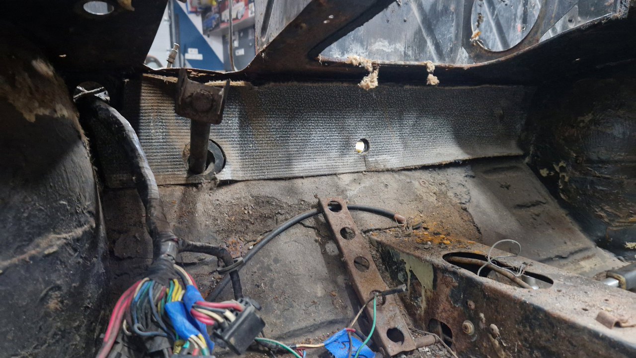 Po odkręceniu nawiewów, pedałów i kolumny kierownicy mamy dostęp do resztek wykładziny.
