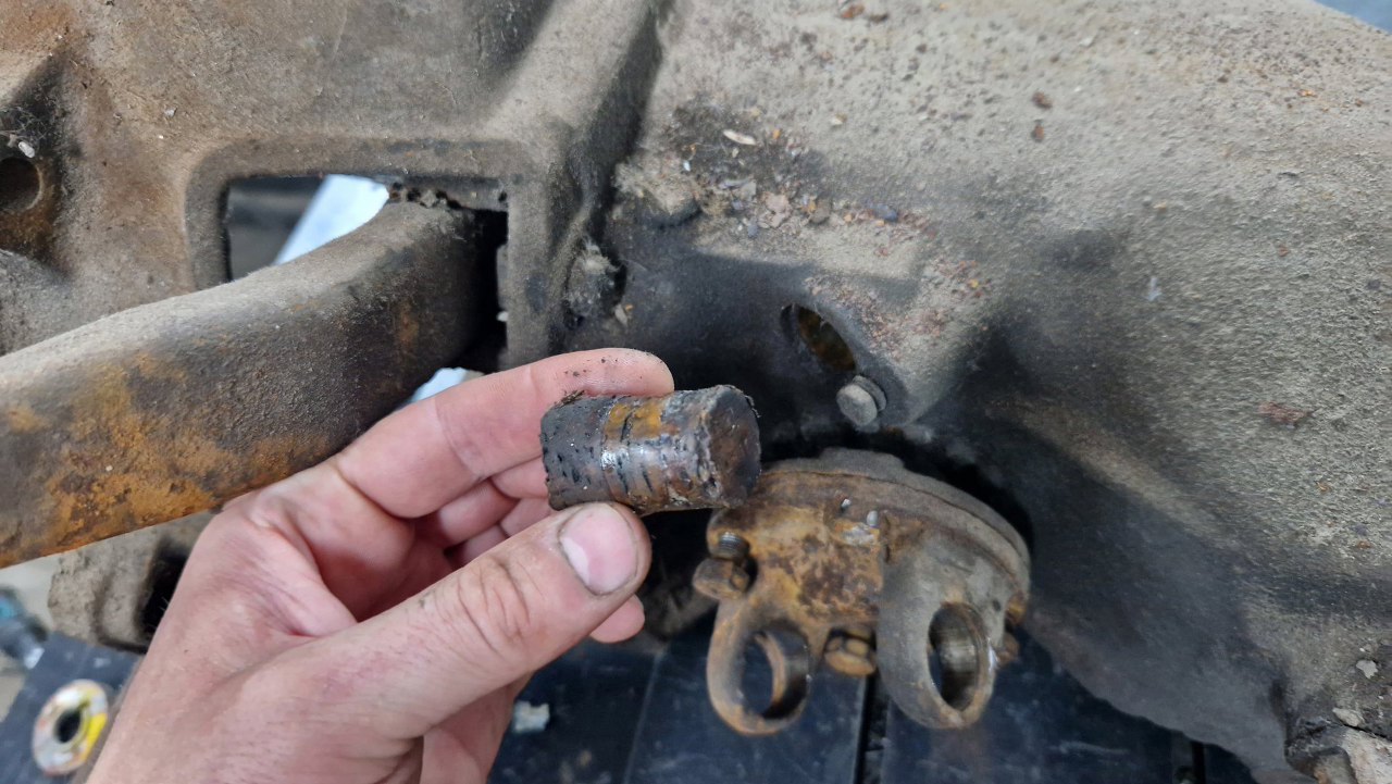 Przerzucając skrzynię z miejsca na miejsce coś mnie tknęło. Powyżej półosi jest miejsce na linkę pręckościomierza, tu czymś zatkane.
