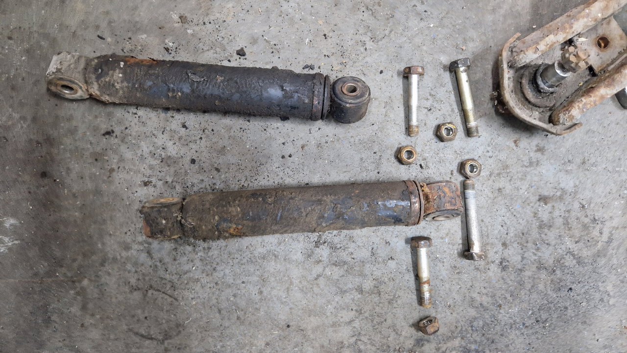 Amortyzatory są oczywiście na złom, ale odnowimy ich śruby mocujące.