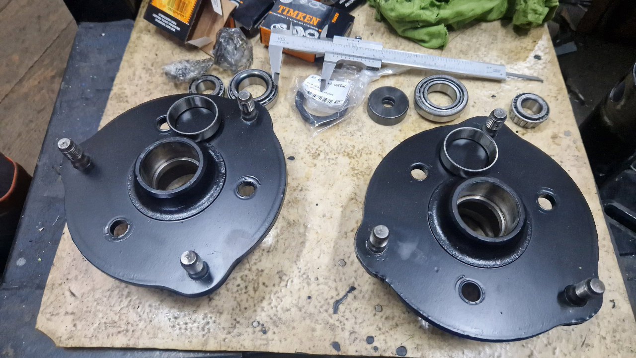 Łożyska i uszczelniacze piast kupiłem lokalnie, w końcu łożysko to łożysko :). Piasty też już są pomalowane.
