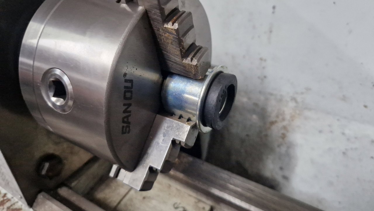 Gumy górnych wahaczy są sprzedawane z adnotacją, że guma wymaga przycięcia. Okazało się, że najłatwiej będzie nam to zrobić w tokarce.