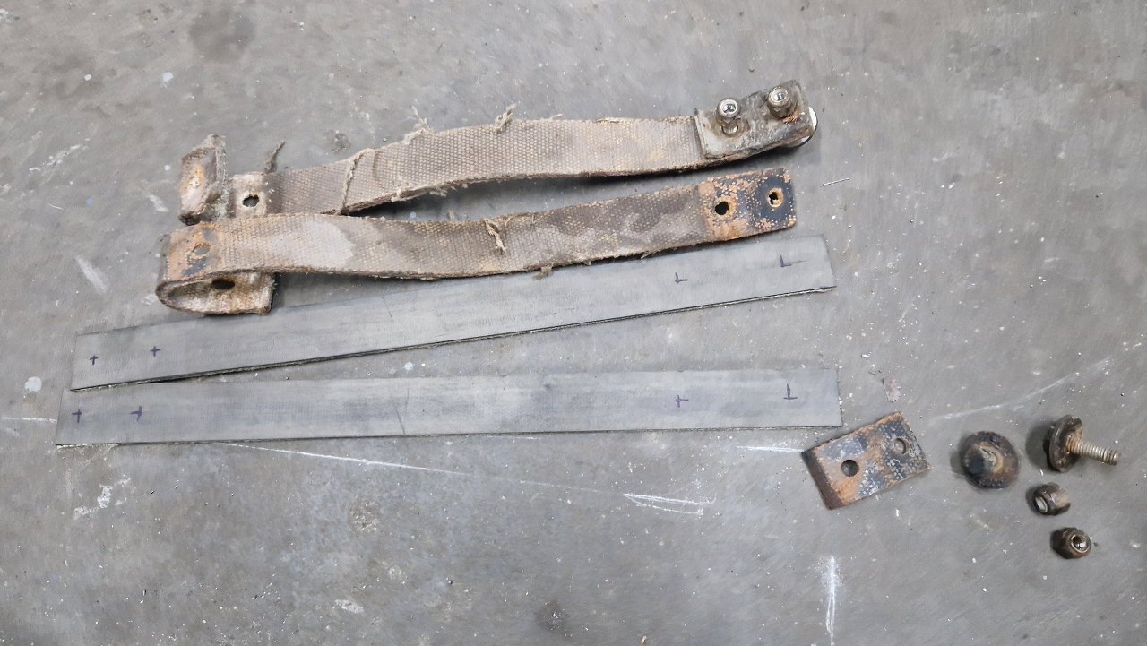 Po zmierzeniu pasków parcianych ograniczających skok zawieszenia wycięliśmy je z kawałka pasa podajnika taśmowego.