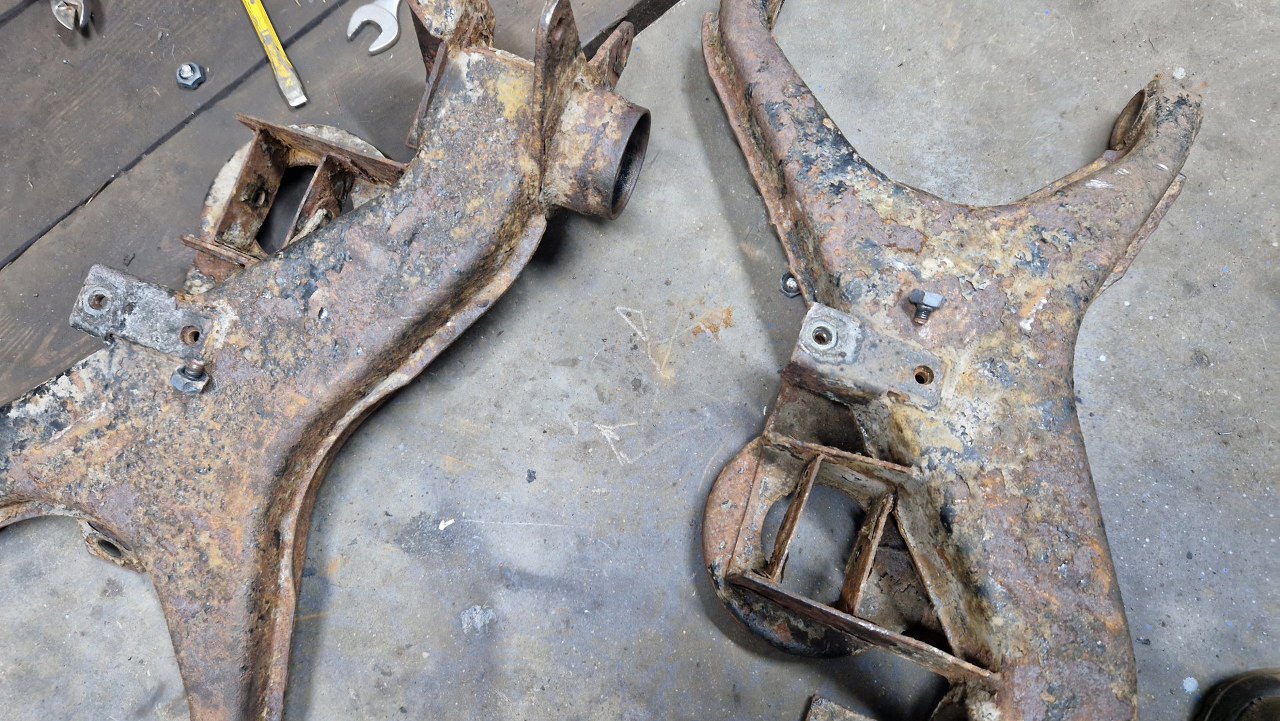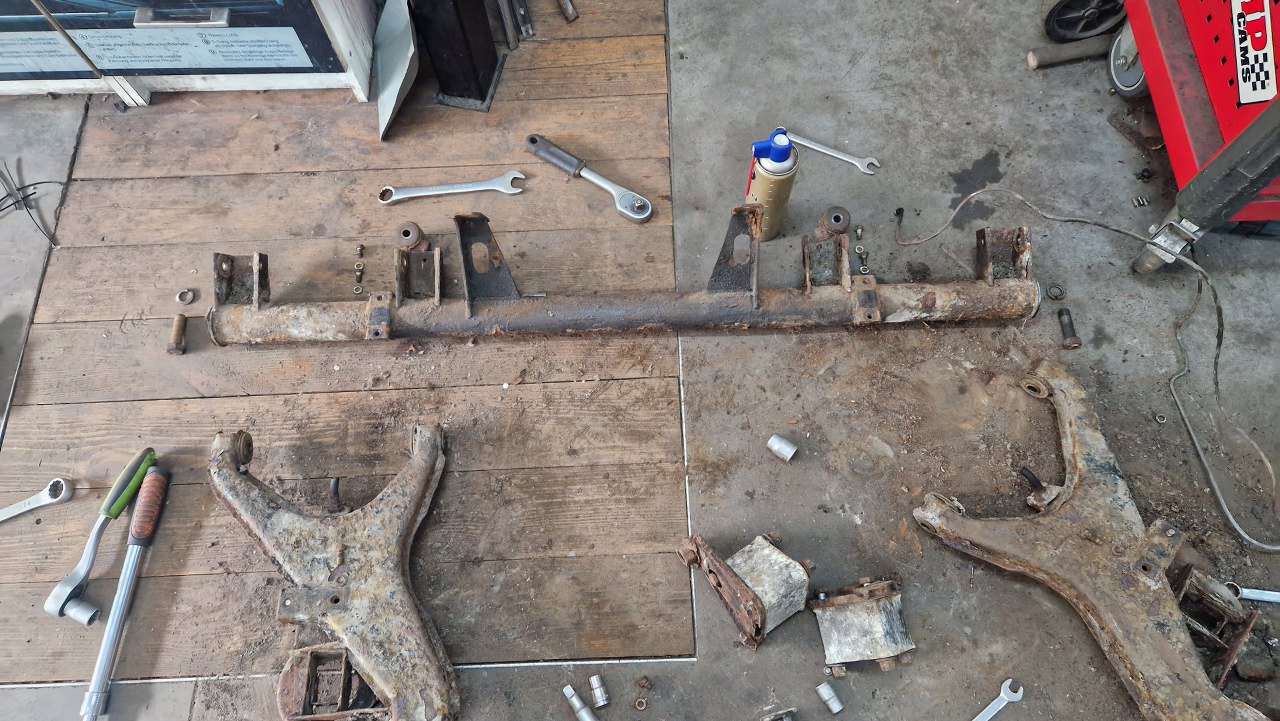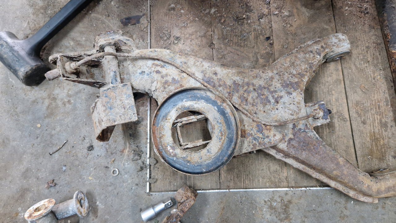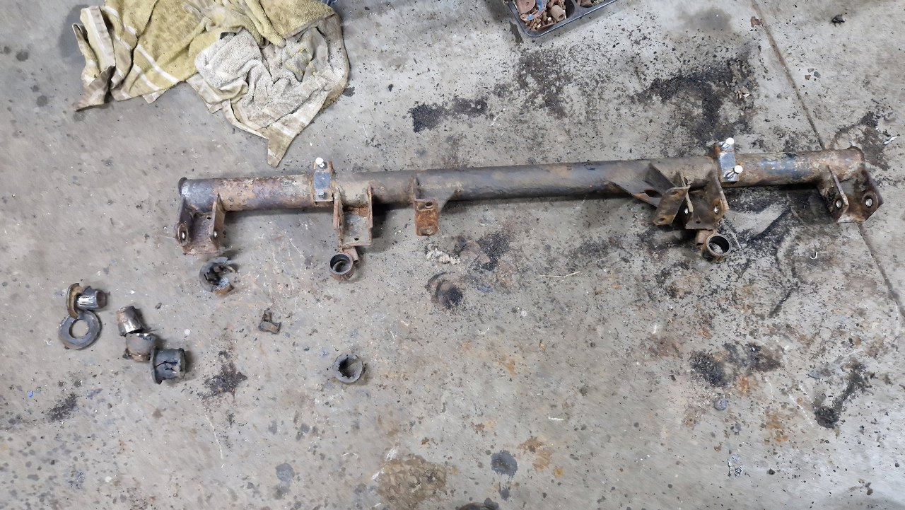 Wybraliśmy lepszą belkę zawieszenia i wyjęliśmy z jej końców gumy mocujące do nadwozia. Tych gum niestety nie ma nigdzie dostępnych, więc będziemy kombinować skąd je wziąć.