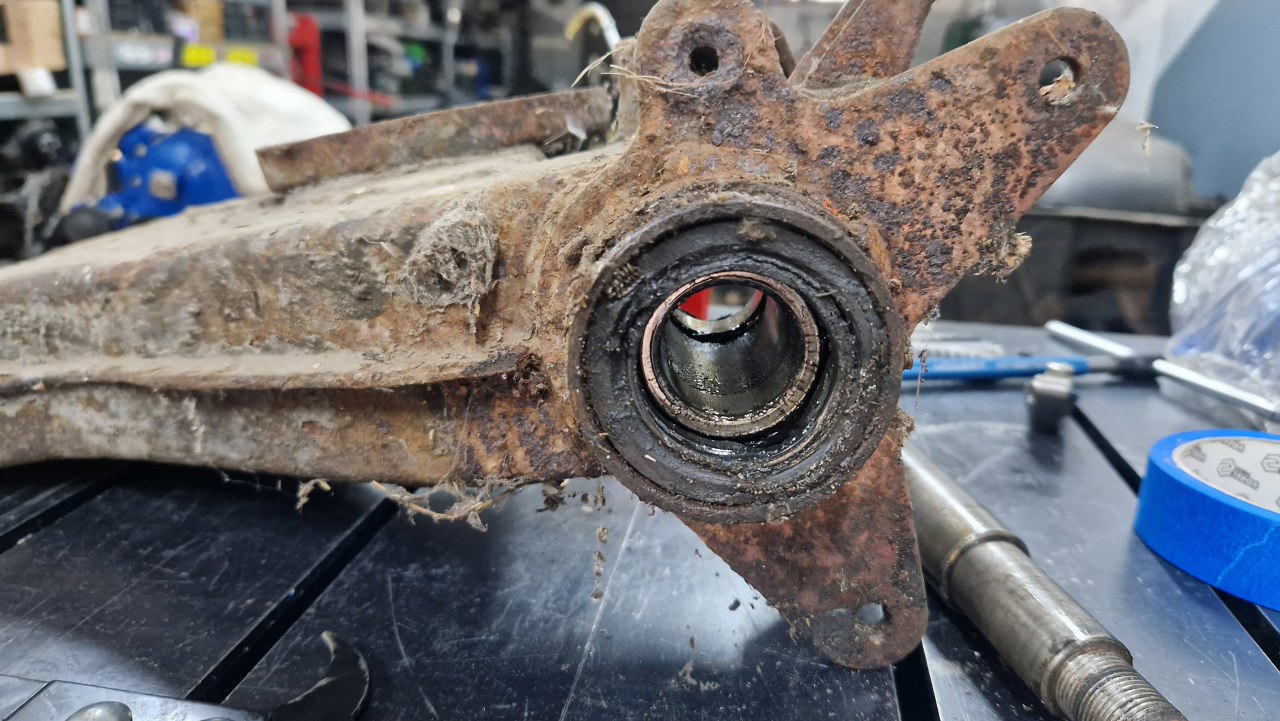 Z wahaczy wyjęte zostały blaszki wzmacniające przy amortyzatorze.