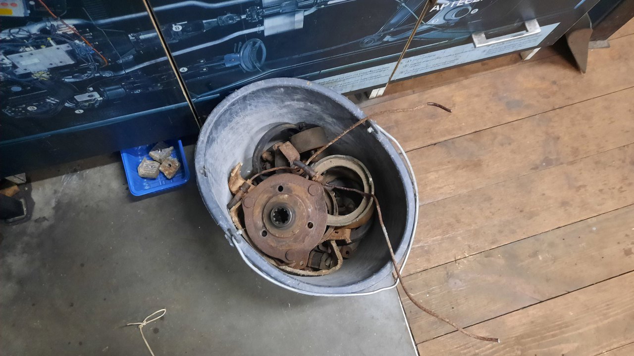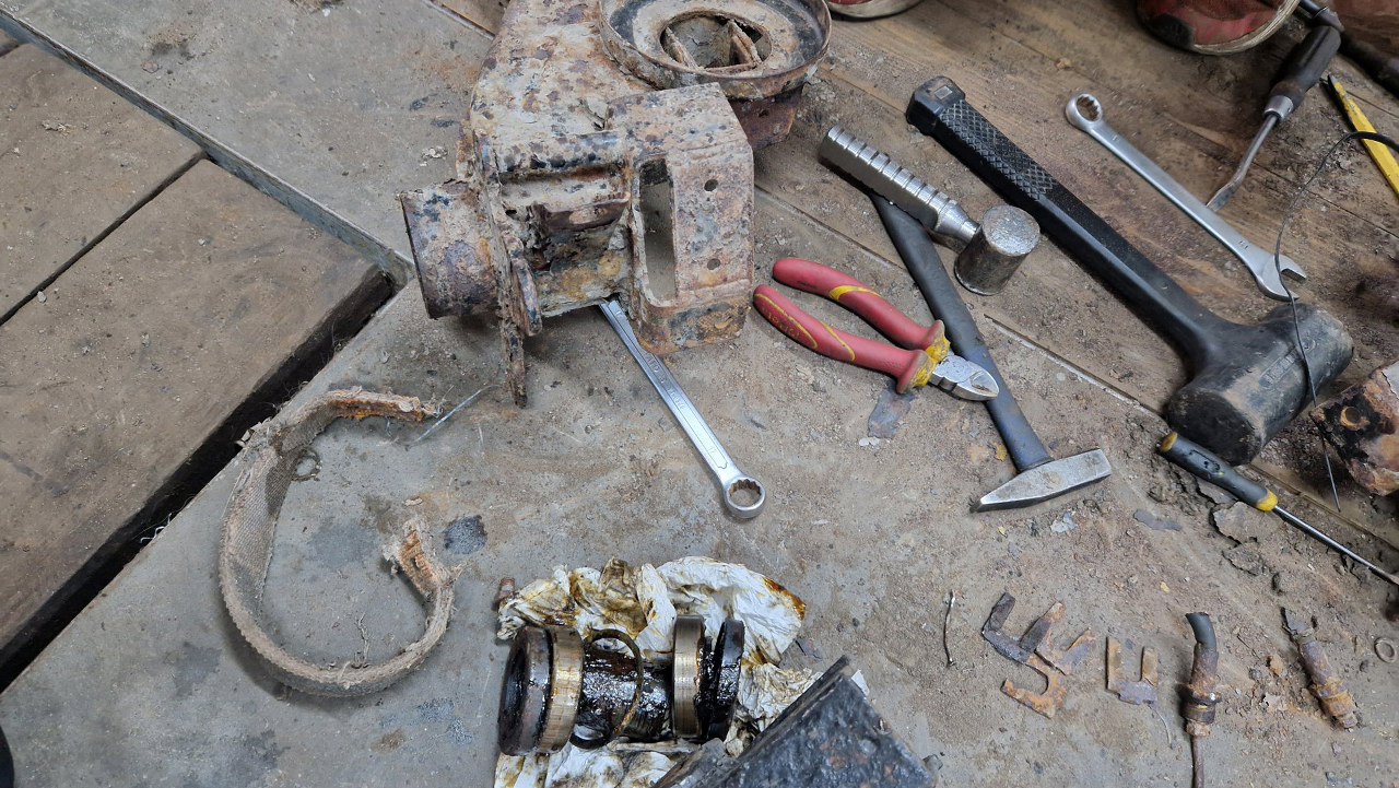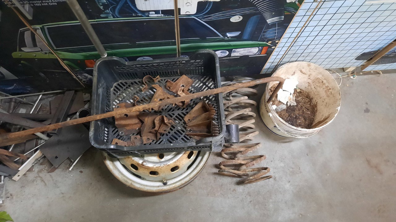 Tu też rozkładamy wszystko segregując części na oddzielne procesy odnawiania. Śrubki lecą do odrdzewiania i cynkowania.