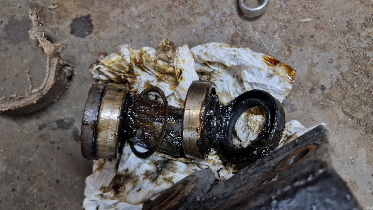 A tu wyjęte łożyska i uszczelniacze, ułożone w kolejności, w jakiej są montowane.