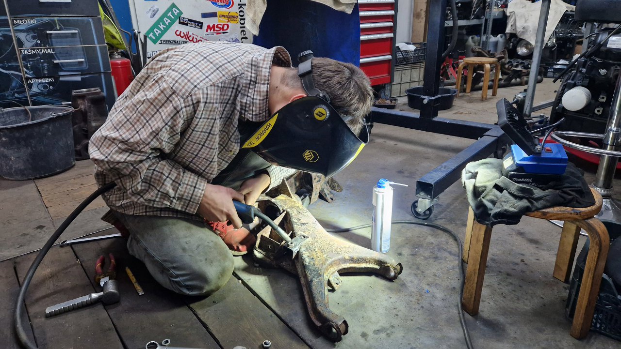 Przy próbie odkręcenia mocowań stabilizatora urwały się śruby, więc Maciek został przeszkolony jak je wykręcać spawarką. To jego pierwsze samodzielne spawanie zdaje się.