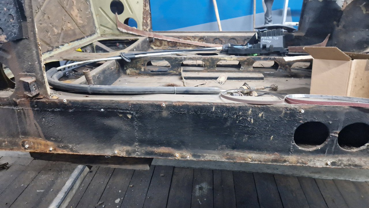 Z przodu nic więcej nie odcinamy, żeby cokolwiek z samochodu zostało. Docelowo prawdopodobnie cała podłoga poleci na złom.