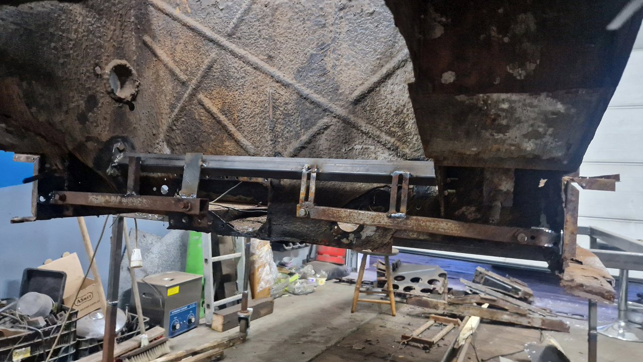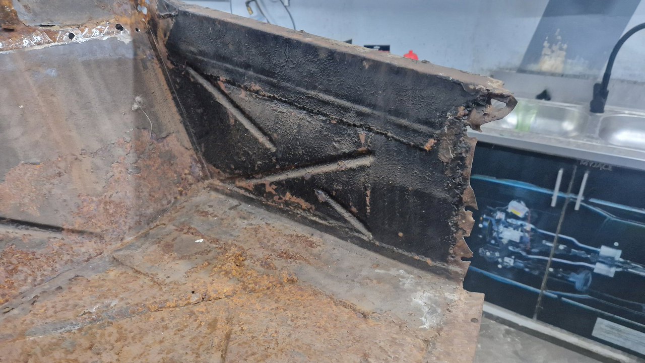 Od dołu do podłogi dospawana jest druga warstwa blach, wzmacniająca konstrukcję. Tylna belka, z mocowaniem skrzyni, trzyma się praktycznie tylko na podłodze bagażnika.