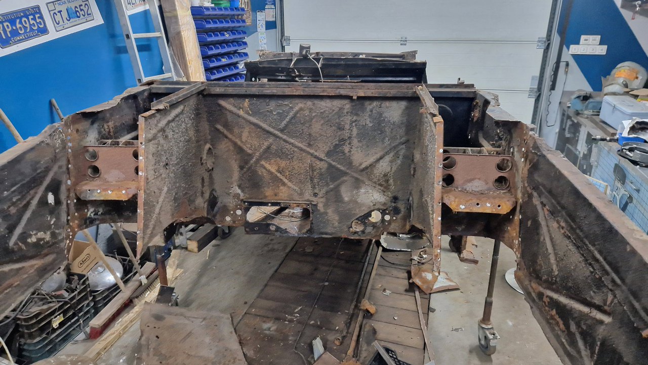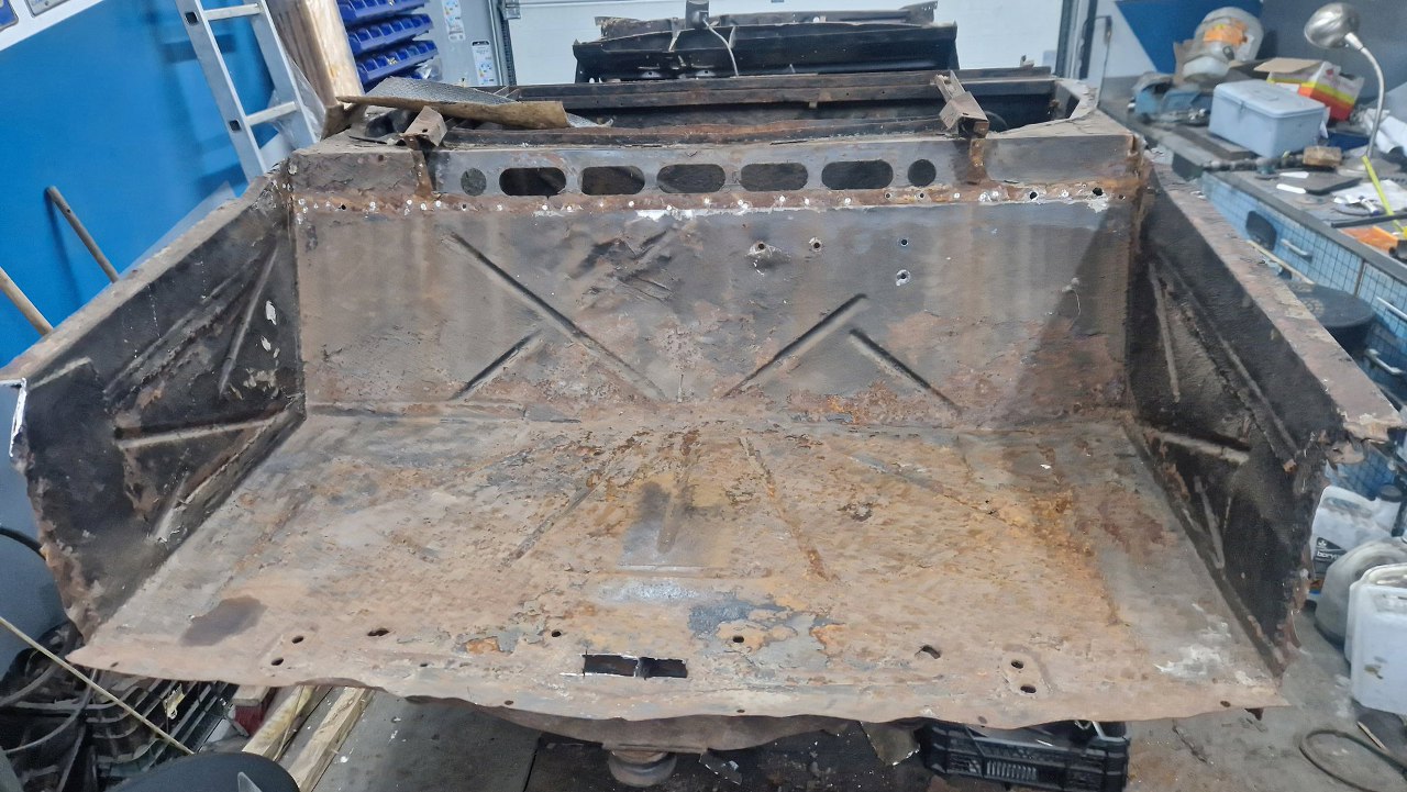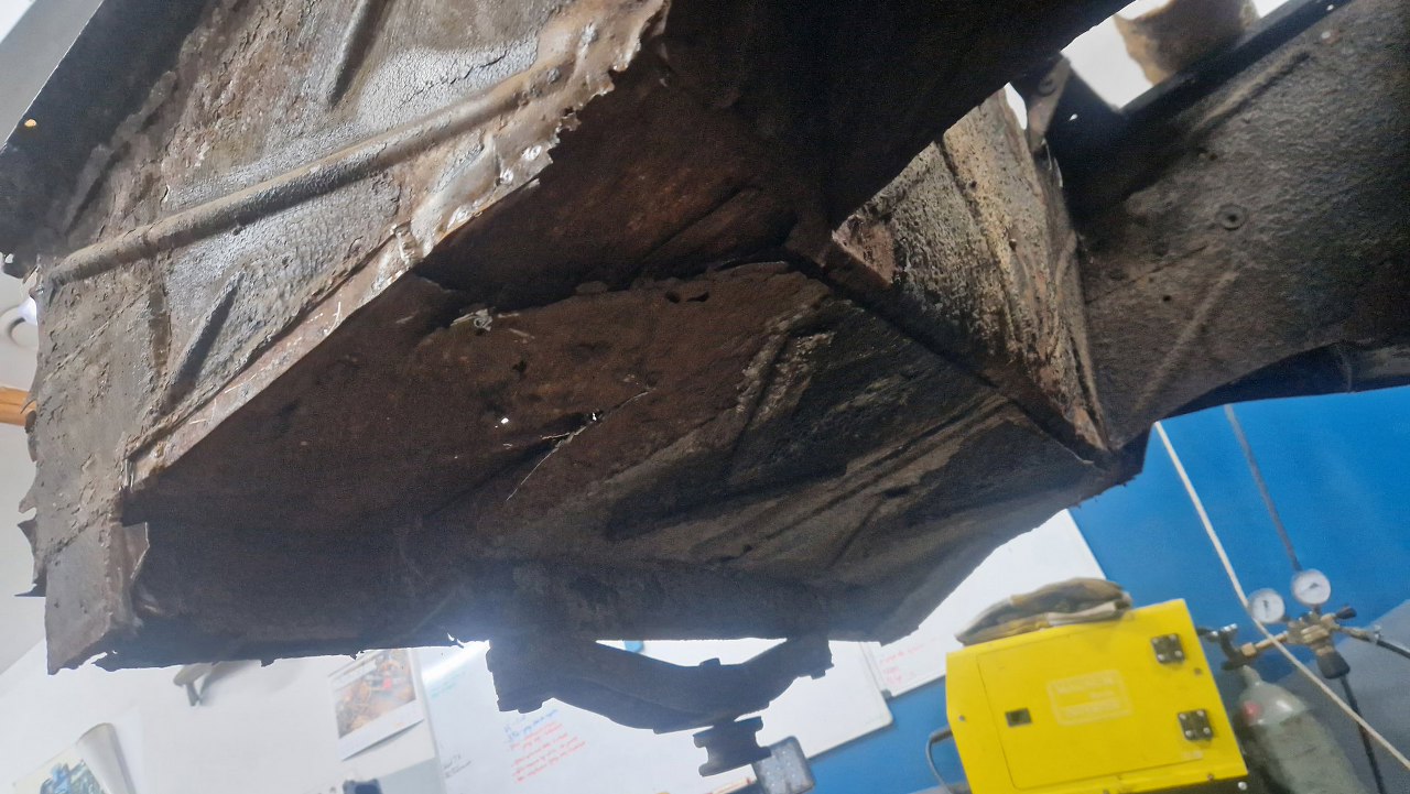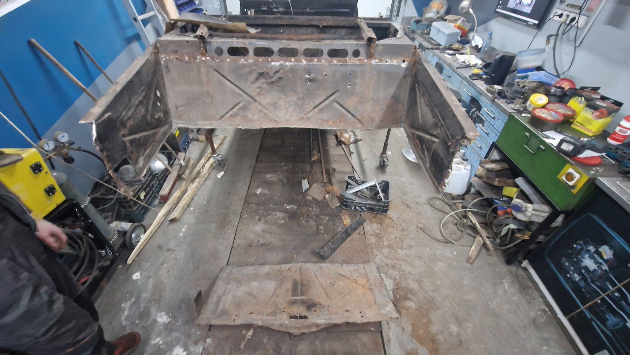 Są do niej też zgrzane te podpórki zawiasów tylnej klapy, które ktoś mocno wgiął młotkiem, wpasowując zawiasy z jakiejś szafki.
