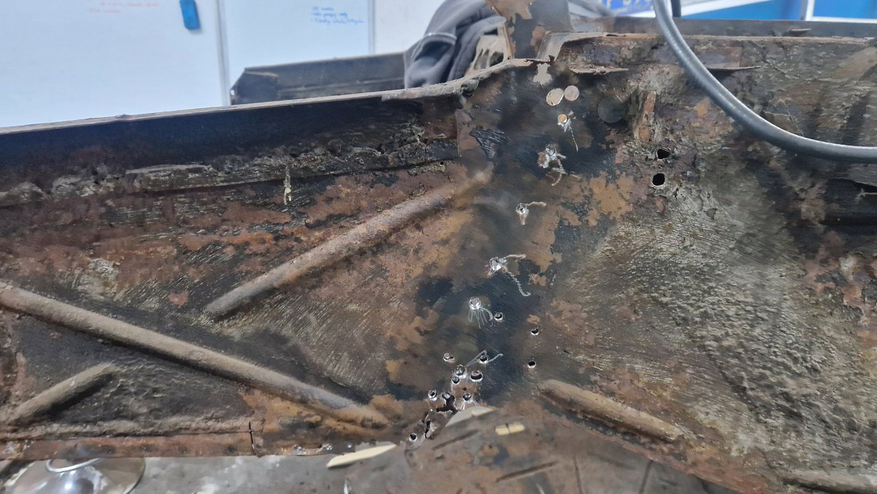 Potem jeszcze zgrzewy pionowe i poziome w okolicach górnego mocowania sprężyn zawieszenia i blacha zdjęta.