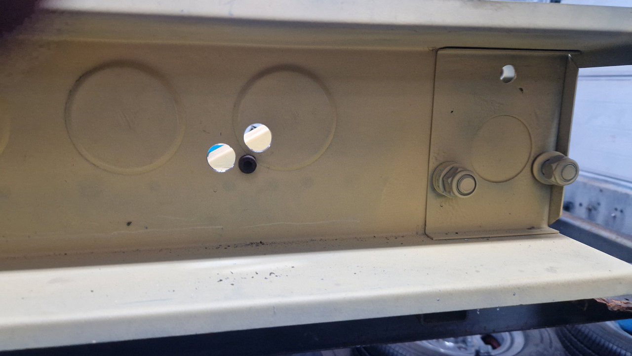 Chyba ryle cięcia powinno wystarczyć. Powyżej otworu widać rozwiercone zgrzewy - pod spodem jest wzmocnienie nakrętki widocznej od góy, do niej przykręca się podszybie.