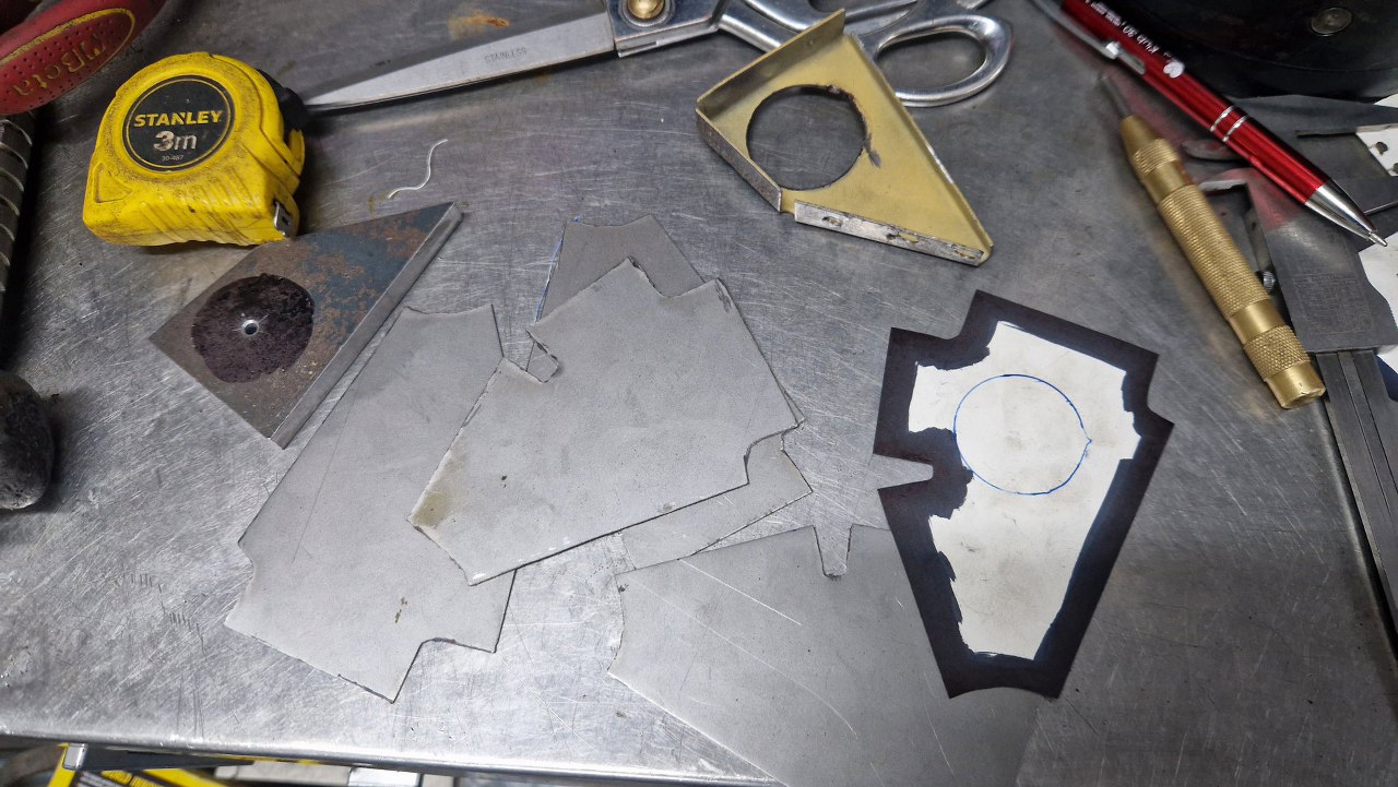 Można to by było zrobić nieco prościej, ale potrzebne będą w sumie cztery takie sztuki, więc oprócz odrysowania potrzebnego kształtu blachy na papierze, wyciąłem z płytki 10mm szablon. Co ciekawe, te części po prawej i lewej stronie są identyczne, tylko są montowane odwrotnie. Zobaczysz później.