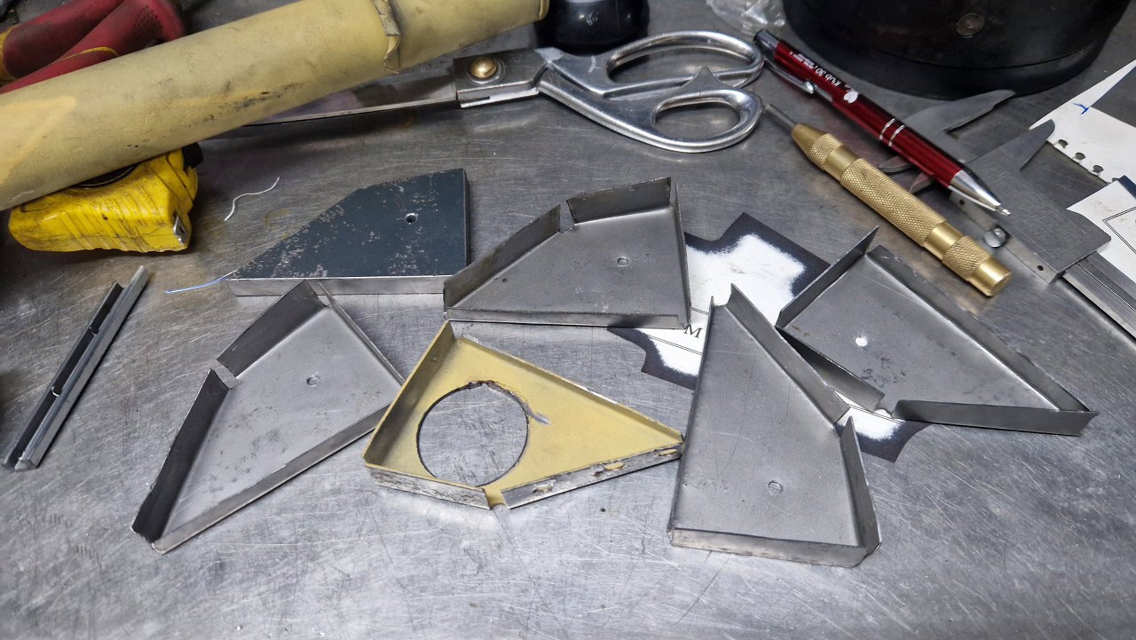 W międzyczasie Maciek wyciął i powyginał dolne mocowania - w kształcie omegi. Dość trudna sprawa, bo z blachy 1.2mm.