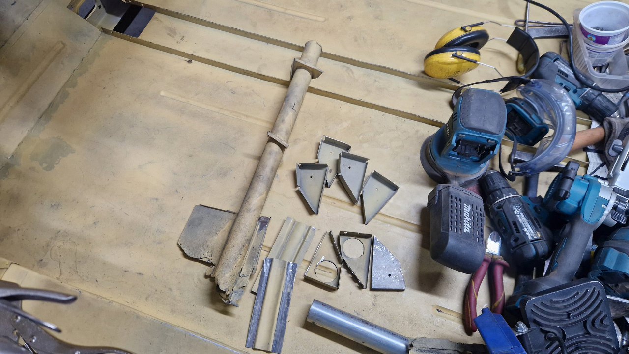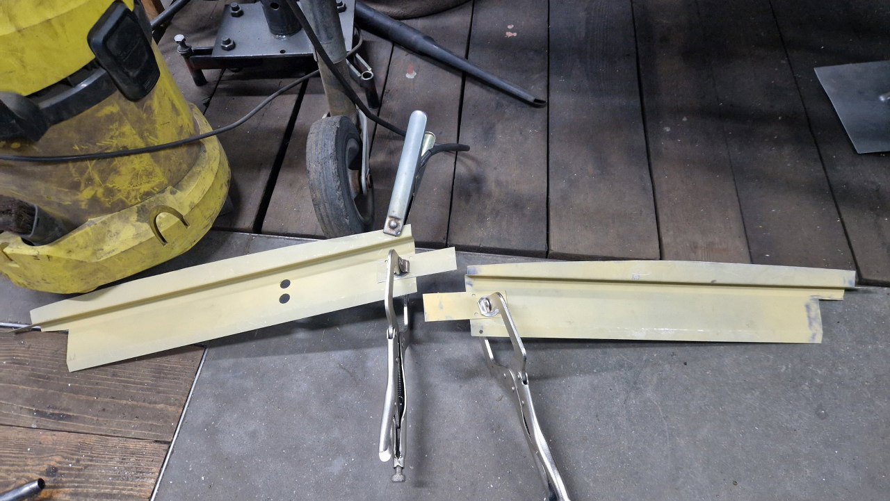 Pierwsze będą wspawane tylne wzmocnienia, bliżej słupków A. Przygotowaliśmy blaszki łączące.