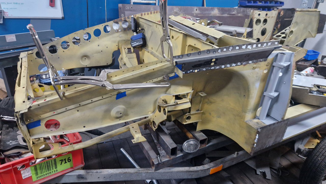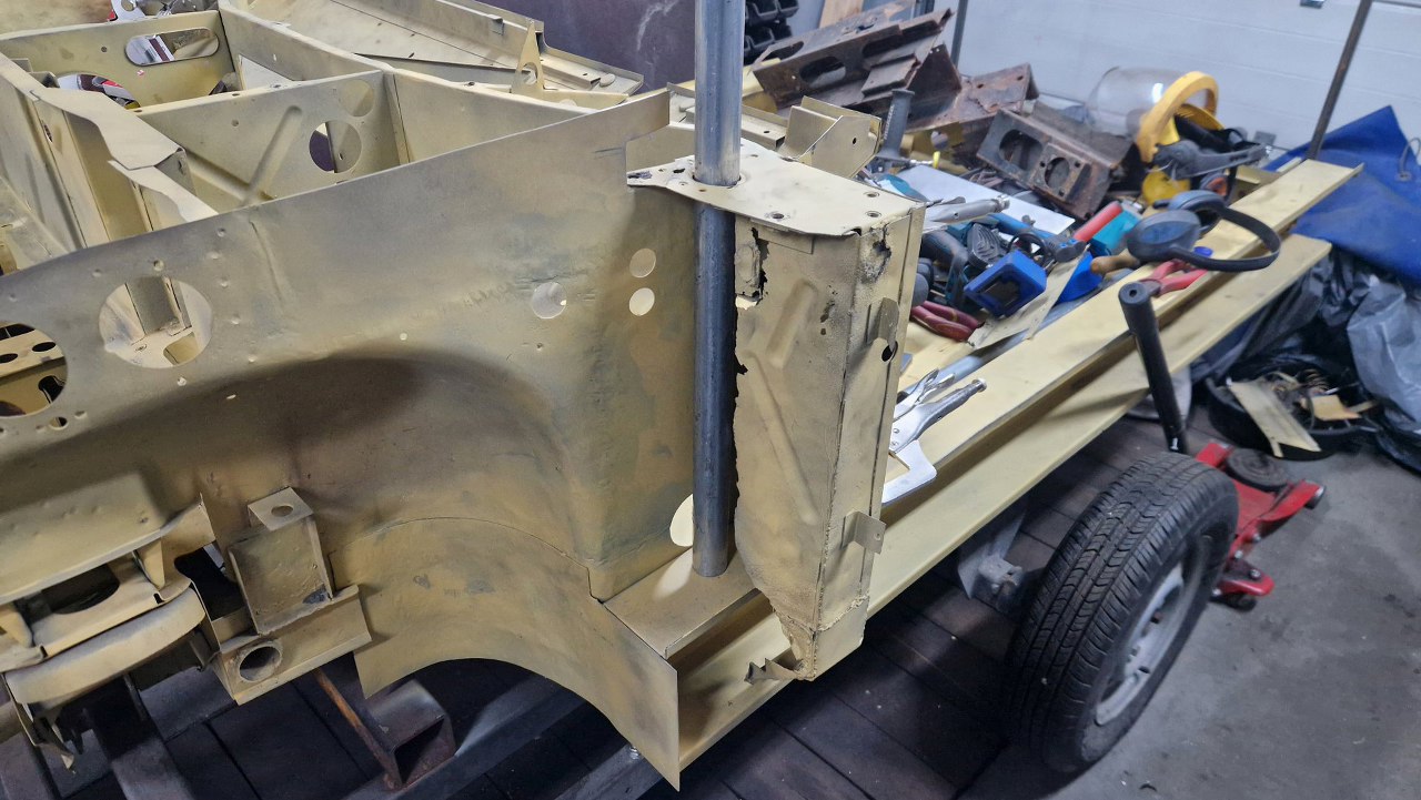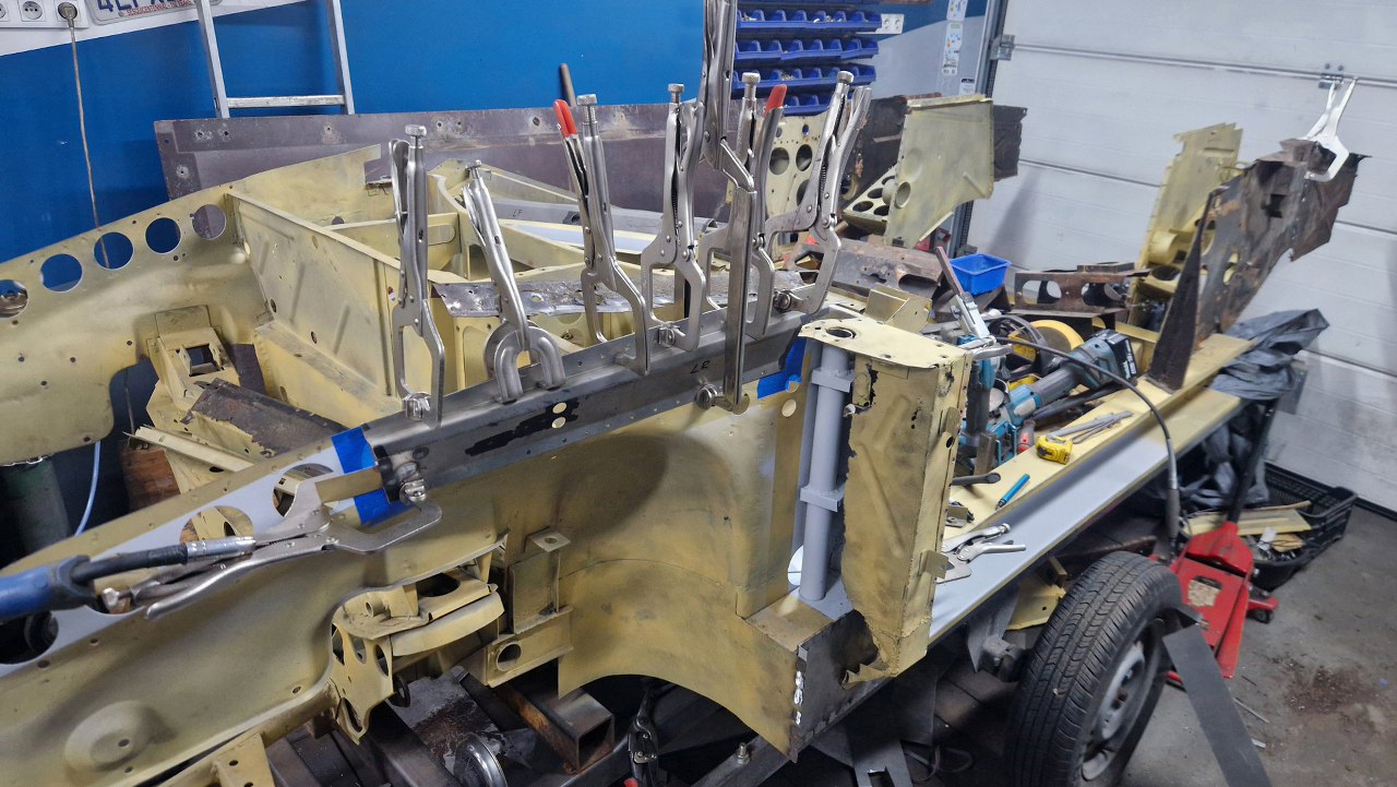 No to pora na pomierzenie gdzie co ma być. Złożyliśmy tymczasowo tylne części blach, bo tam mamy punkty ustalające w ramie podwoziowej.