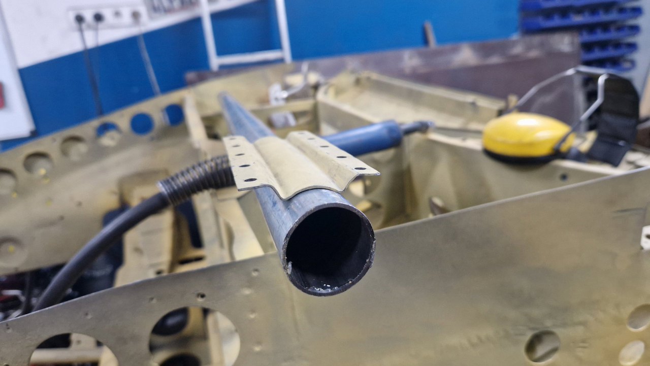 A tu widać te dolne mocowanie w kształcie omegi. Rury nie udało się kupić o średnicy oryginalnej, 36mm, mamy za to rurę 35mm. Dlatego wszystkie mocowania i tak są ciut inne.