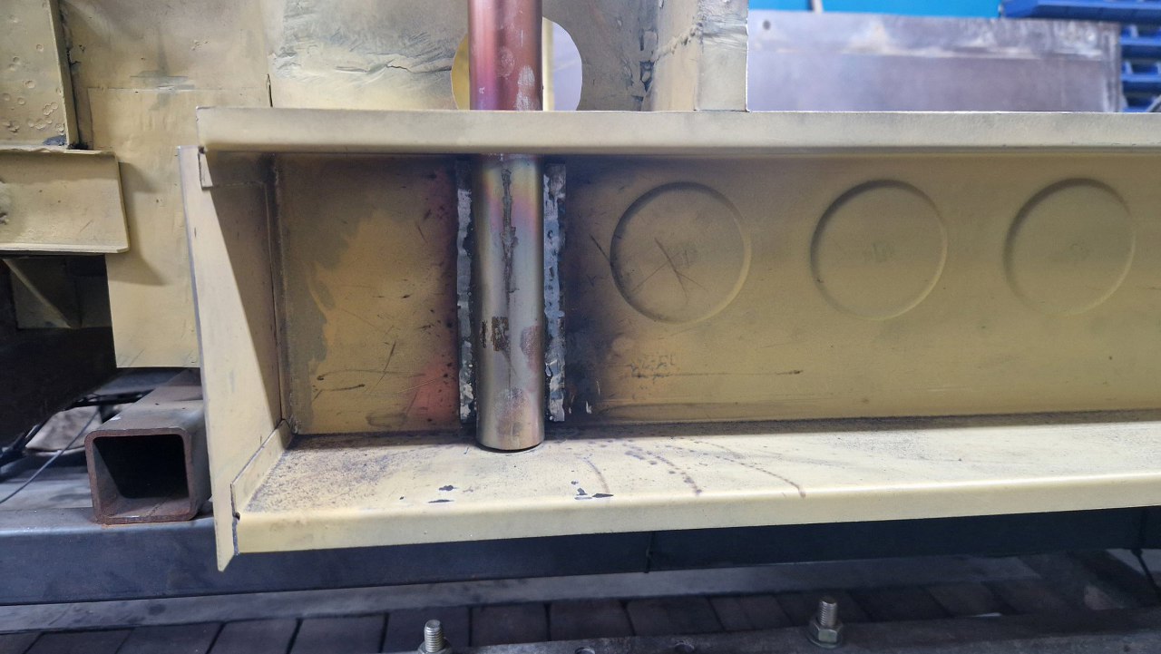 Oryginalnie rura miała i otwór w dolnej części progu, ale tam jest już jedno wzmocnienie podłogi wspawane. Te mocowanie od dołu zrobiliśmy (może pamiętasz sprzed kilku stron) na czuja, bo wszystko tu było tak mocno wygnite, że nie było wiadomo co tu w zasadzie było. Dlatego tu zmieniamy nieco konstrukcję w stosunku do oryginału - rura nie będzie otwarta na zewnątrz przez dół progu, ale żeby w nią od góry wilgoć nie wchodziła, to i od góry ją zamkniemy. W każdym razie po ustawieniu rury najlepiej jak się dało, wspawane zostało dolne mocowanie , rura i górne mocowania. Te górne mocowania wspawane są tylko z dwóch stron. Chyba w kreślarni konstruktor nieco kąty popieprzył, bo tak było oryginalnie, że jedna ze stron prawie przylegała do wewnętrznego poszycia, ale tylko prawie. Po stronie kierowcy wzmocnienia te są mocowane z wygięciami do dołu, zwróć uwagę na późniejszych zdjęciach na stronę pasażera - tam są odwrotnie.