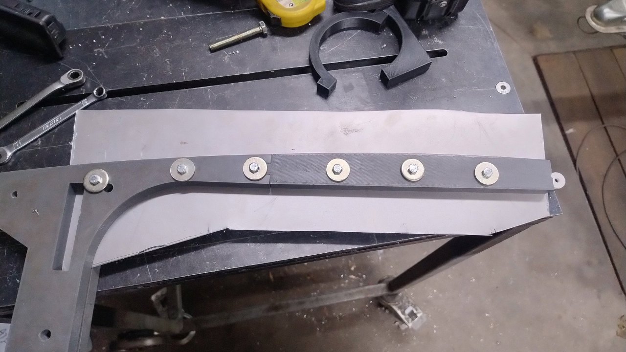Pierwotny pomysł bowiem zakładał narysowanie tego na sklejce, wycięcie, i użycie jej jako szablonu do wyklepania blachy. Tu wkroczyłam ja, ze słowami "potrzymaj mi piwo, synu" i wydrukowałem to wszystko dwa razy. Wygląda na to, że jest to ciut dokładniejsza metoda niż cięcie sklejki wyrzynarką.