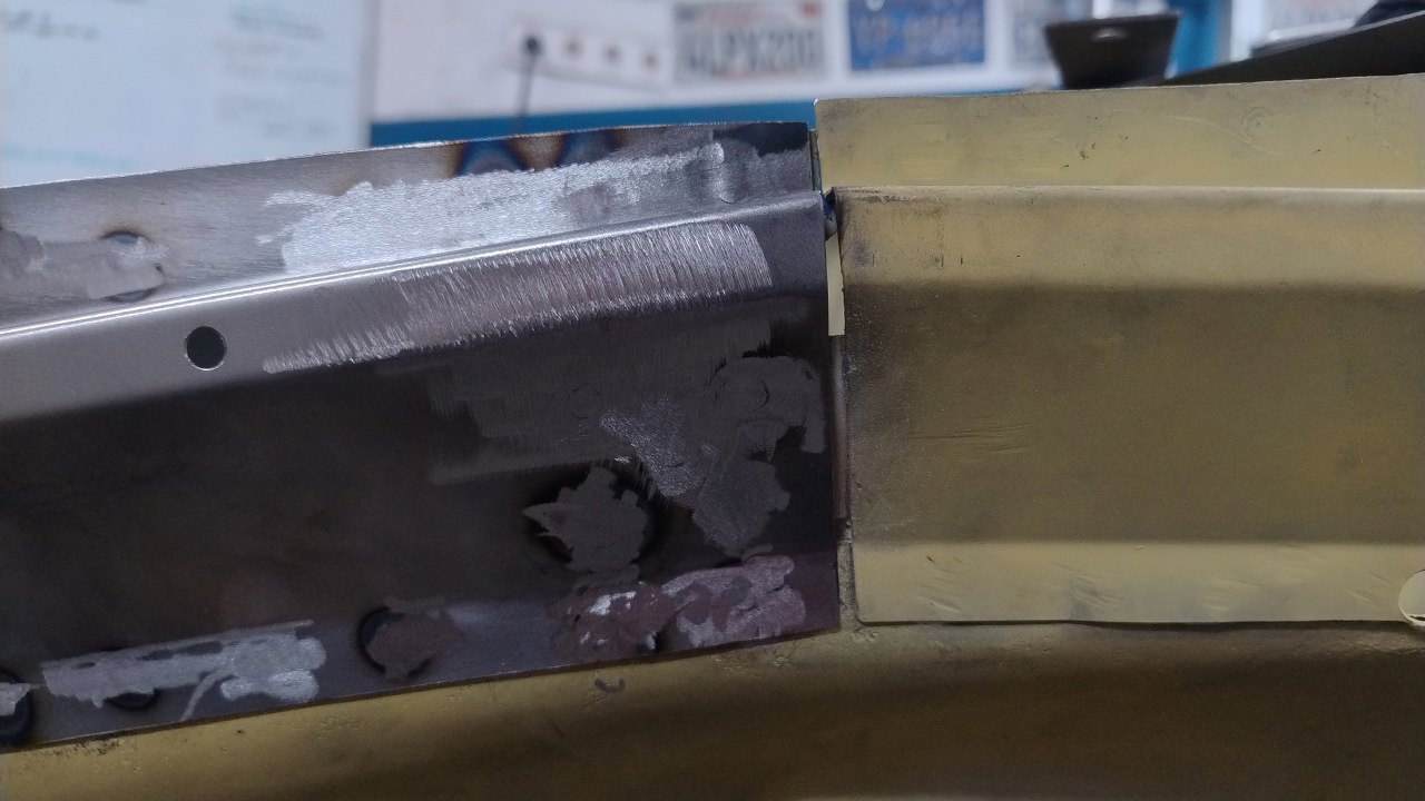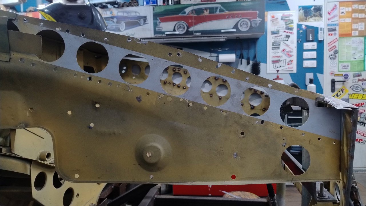 Z tej strony są otwory na spawy - pozostałości po odwierceniu oryginalnych części. Czyli nawet spawy będą w oryginalnych miejscach :).