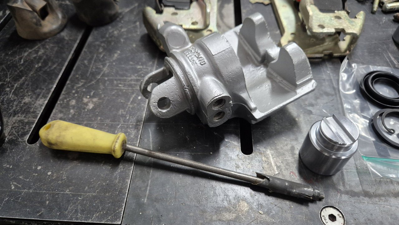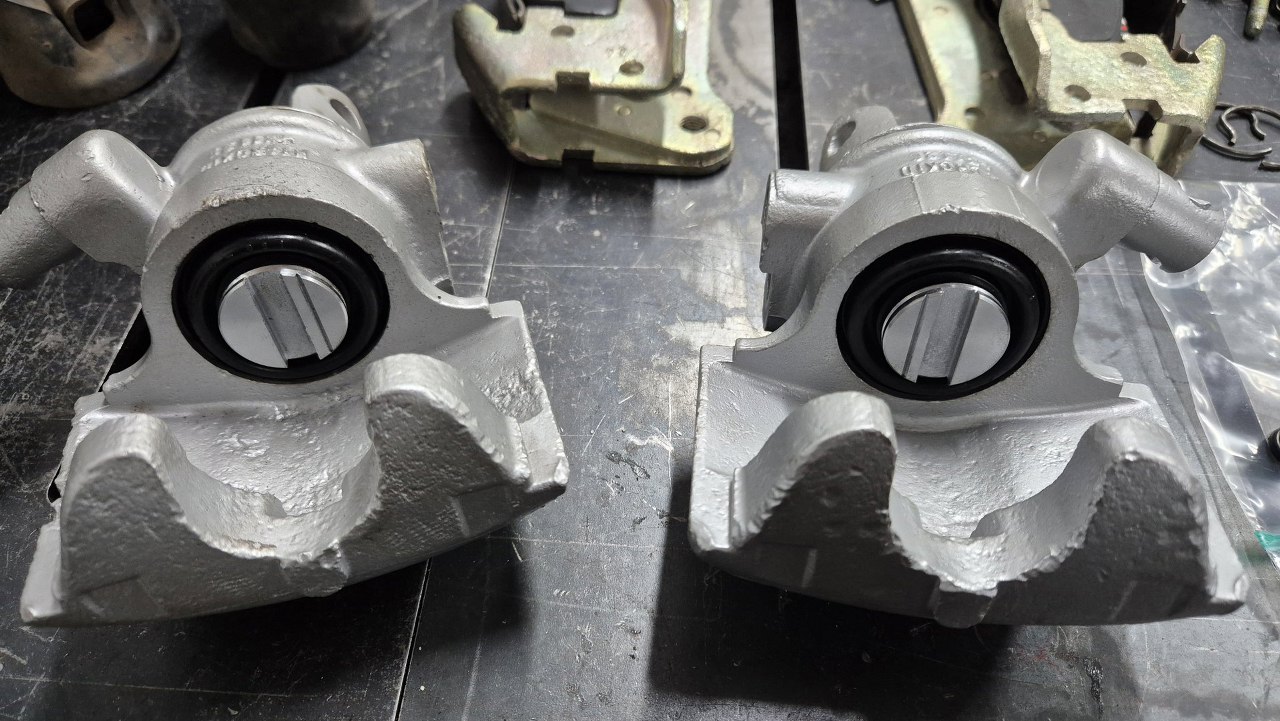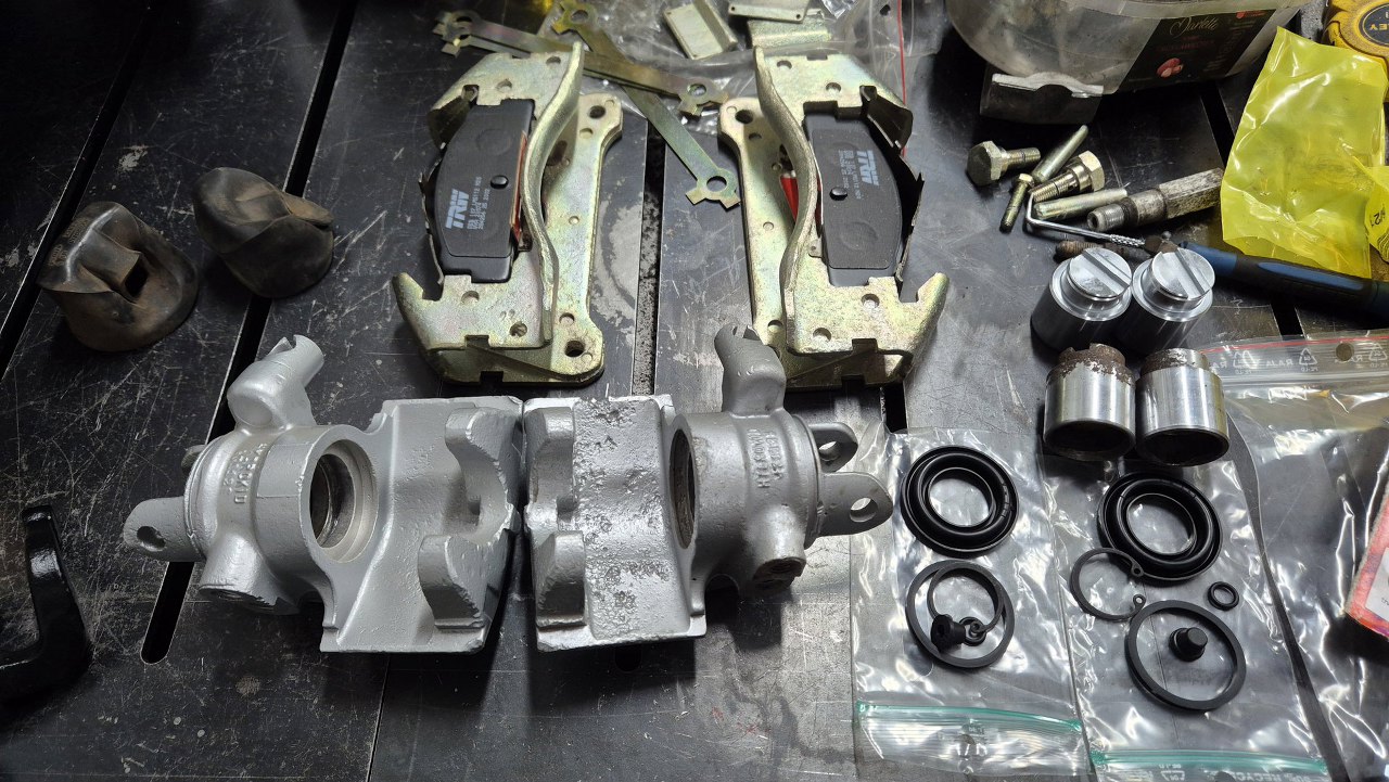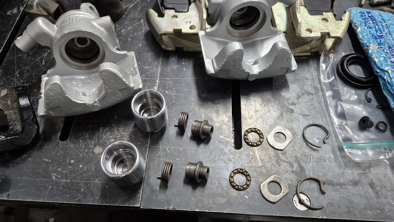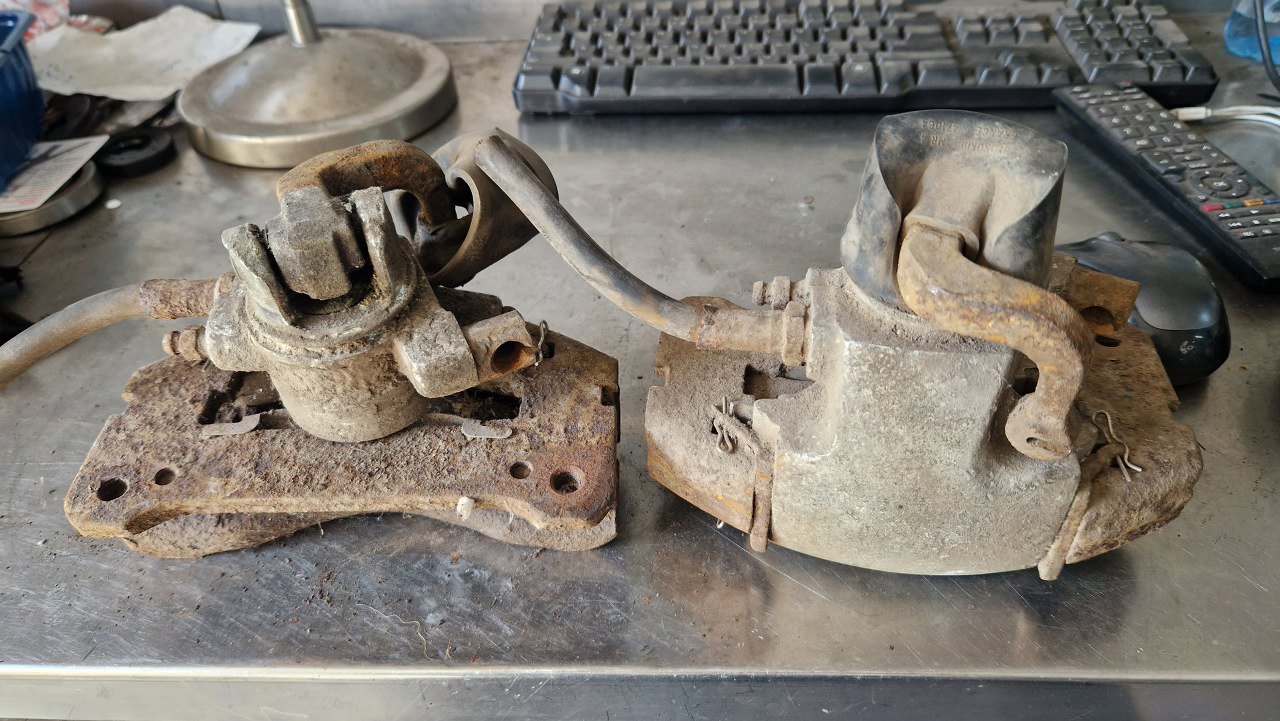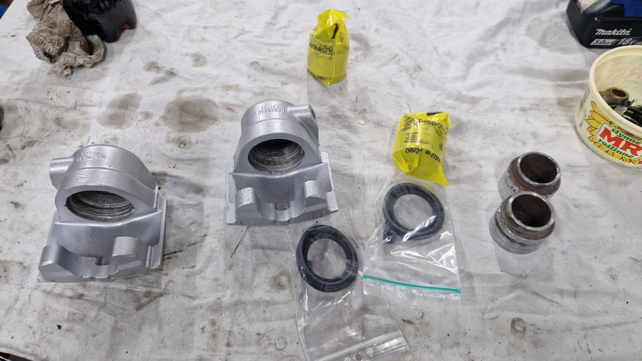 Na częściach są oznaczenia Hydrokid. Bardzo mało jest na temat tej firmy informacji, ale jej hamulce były montowane jeszcze w Simcach, Renault z tamtej epoki i pewnie jeszcze czymś. Tłoczki, zestawy naprawcze i klocki udało się kupić w sklepie z częściami do Matry, ale to by było na tyle. Co i tak jest dużym sukcesem.