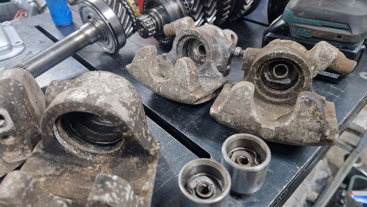 Ramiona hamulca postojowego też były szkiełkowane, wyjąłem też z nich tulejki, na których się obracają.