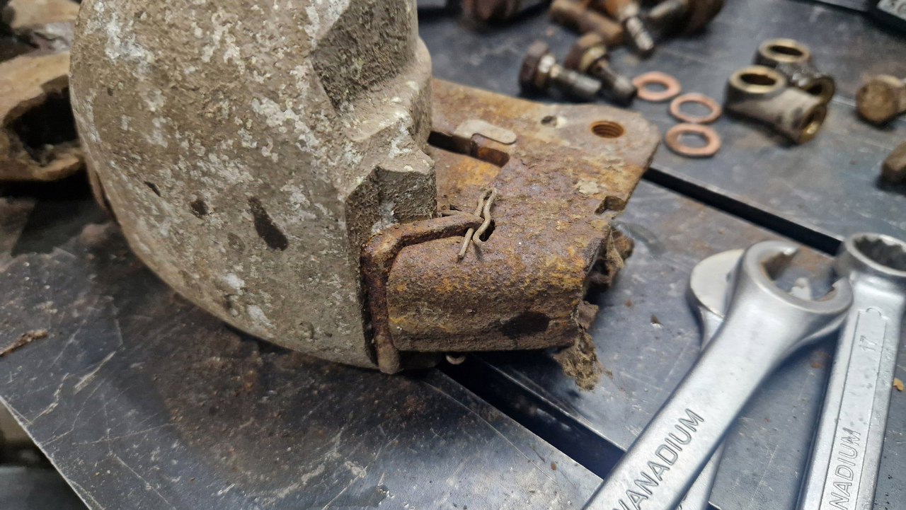 Potem znowu części uleżały się na półce, ale zostały wyciągnięte i kończymy składanie. Jarzma po szkiełkowaniu poszły do cynkowania. Widać w nich sporo wżerów, ale konstrukcyjnie są mocne i można je uzywać. Podobnie zaciski - mają sporo wżerów (zwłaszcza tylne), ale będą działać.