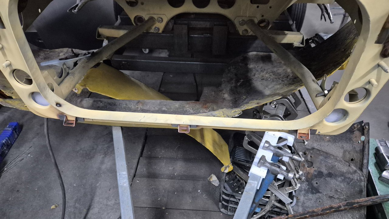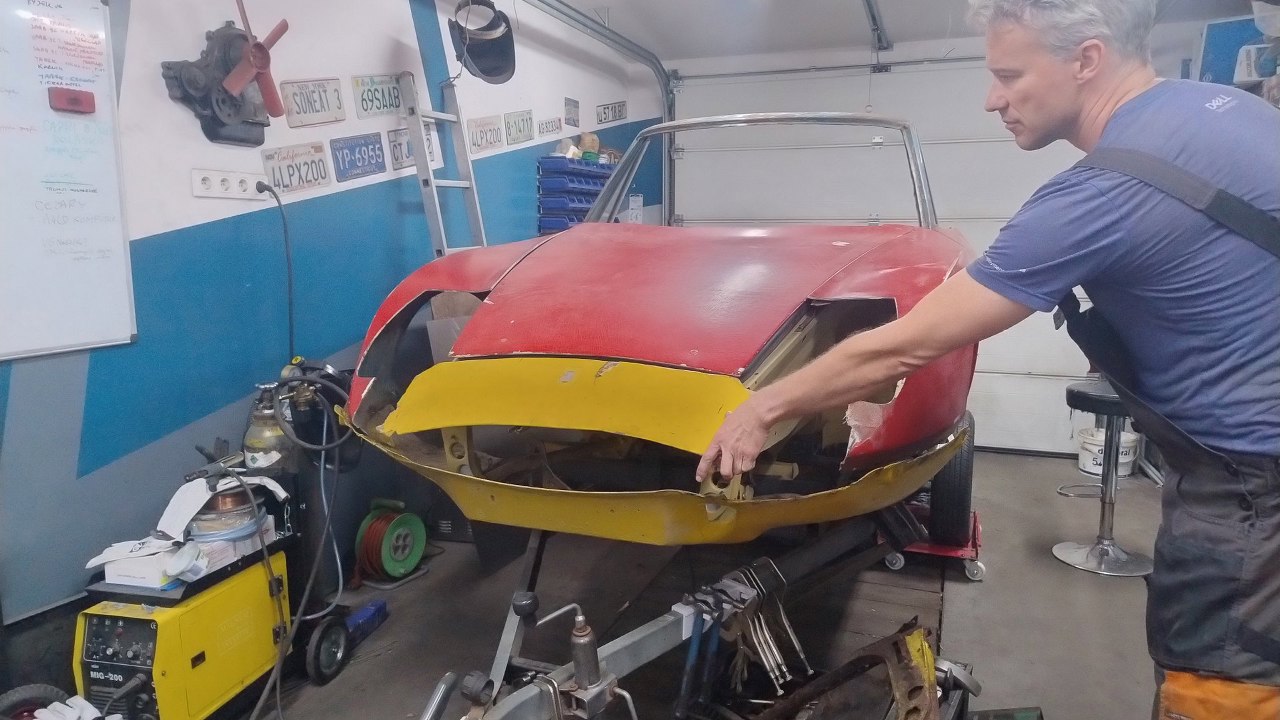 Z czerwonej Matry pas przedni górny i dolny są w bardzo słabym stanie. Żółty pas przedni dolny jest nieco inny, ale póki co do przymiarek musi wystarczyć. Ma inne łączenia z błotnikami, co na razie nam nie przeszkadza.
