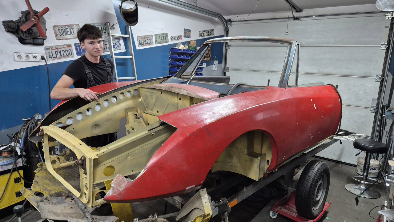 Potem maska, również wyregulowana, a do niej błotniki. Przy drzwiach i masce użyliśmy resztek uszczelek, żeby wiedzieć jakie powinny być przerwy między panelami.