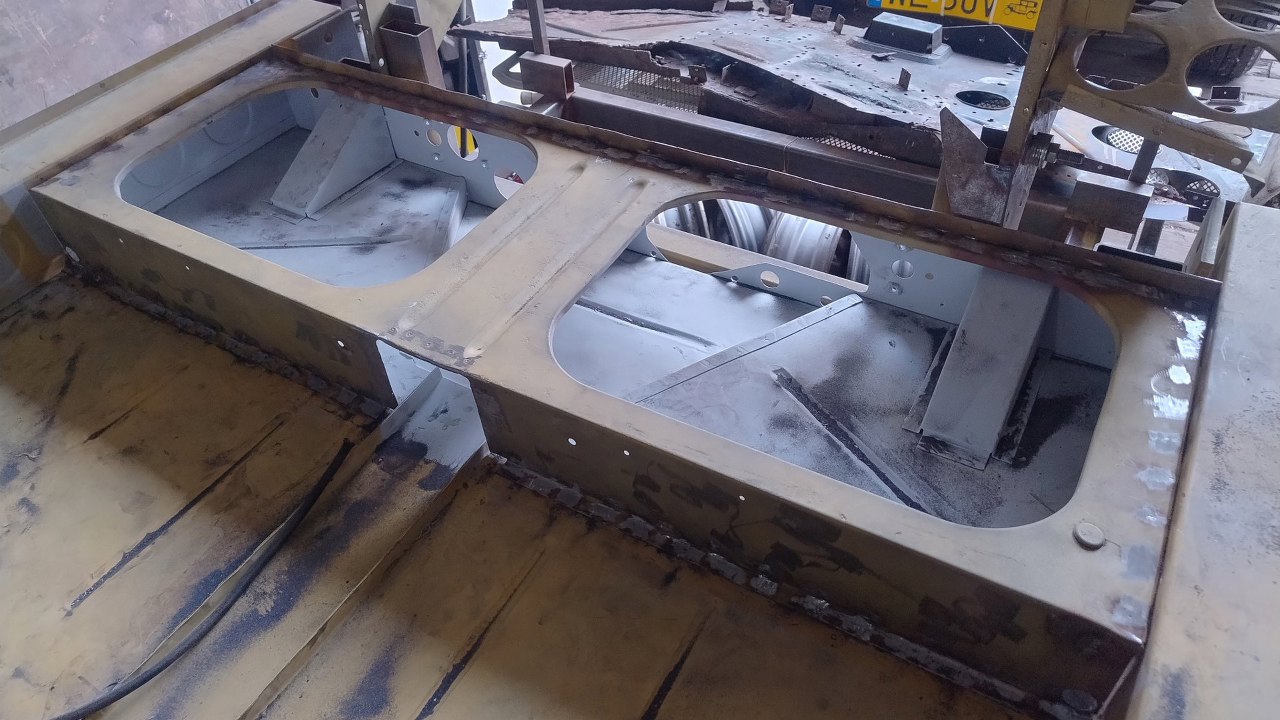 Ponieważ te części będą spawane w miejsca, gdzie nie będzie do nich dostępu z jednej strony, pomalowane zostały podkładem epoksydowym, z pominięciem miejsc, gdzie będą spawane.