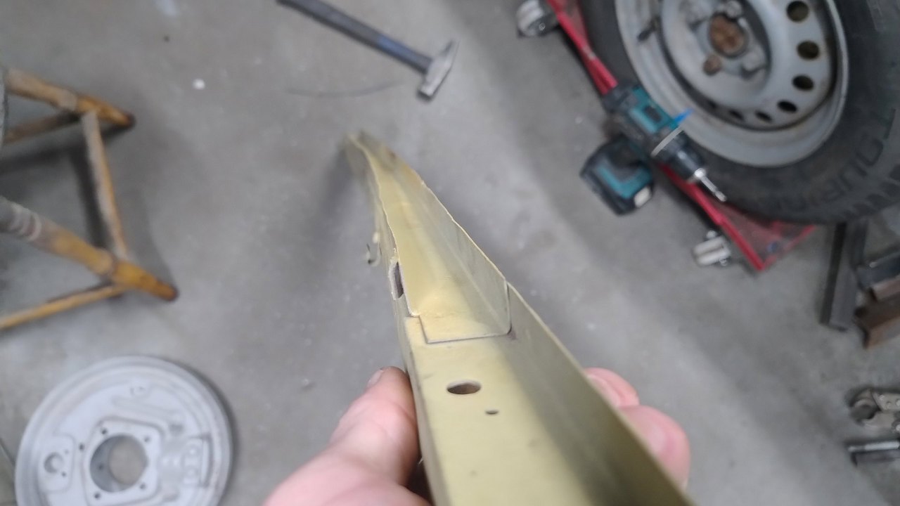 I można to wygiąć. Całość utrudnia to, że nie są to gięcia pod kątem prostym - ta blacha grodziowa jest nieco pochylona do tyłu samochodu, a wzmocnienie z niej wychodzi poziomo. Potem to pokażę na zdjęciu.