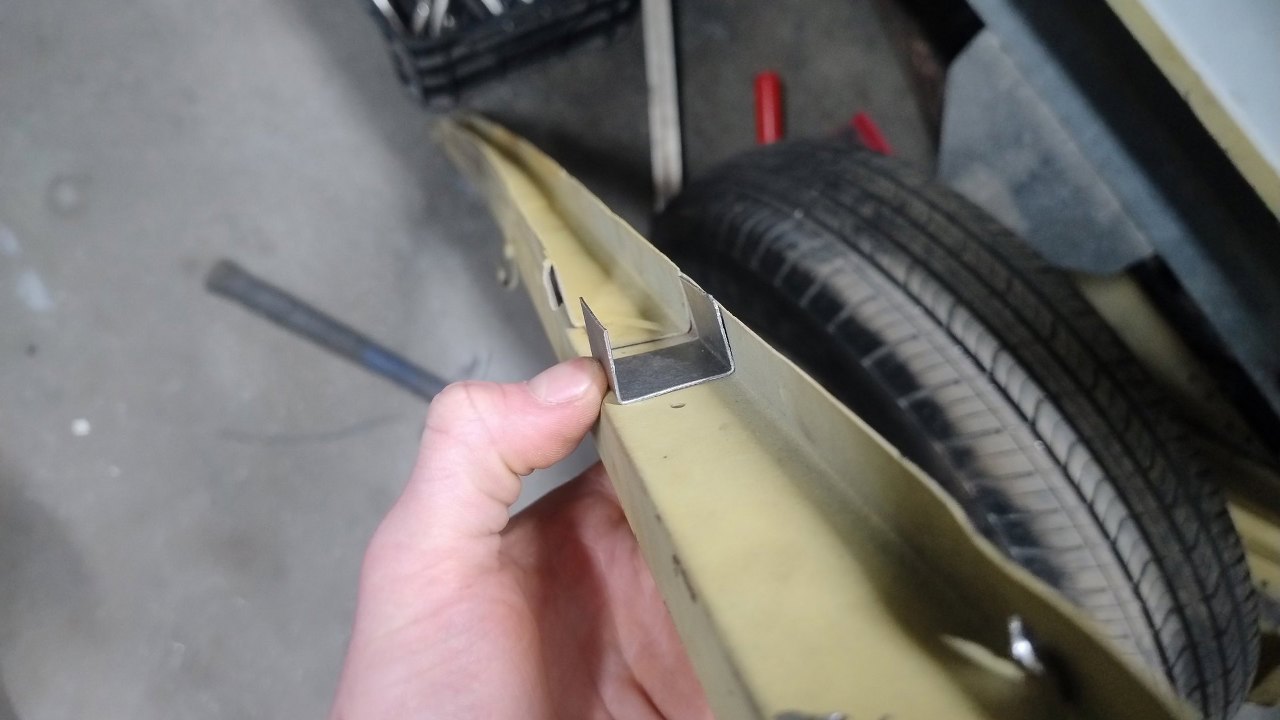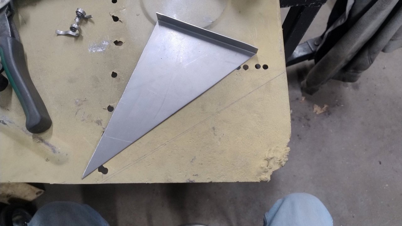 Ale po krótkiej walce z użyciem różnych przedmiotów i kolana wróciły do bycia prostymi. Na końcach profila trzeba jeszcze było zrobić zakładki do połączenia z bokami auta.