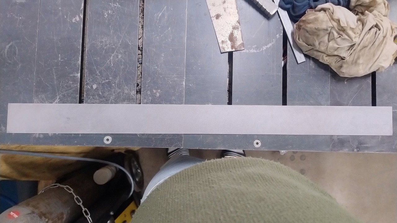 Gotowe. Dużym minusem jest to, że nie mamy tak długiej giętarki, żeby tą część zrobić z jednego kawałka. To na razie zostawiamy, ale w międzyczasie zamówiliśmy taki profil gięty na zamówienie...
