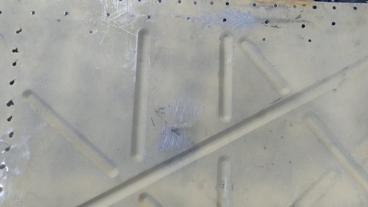 Jeszcze w jednym miejscu jest wgnieciona blacha, pomiędzy tymi przetloczeniami.