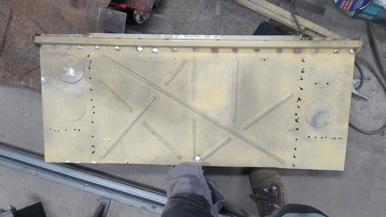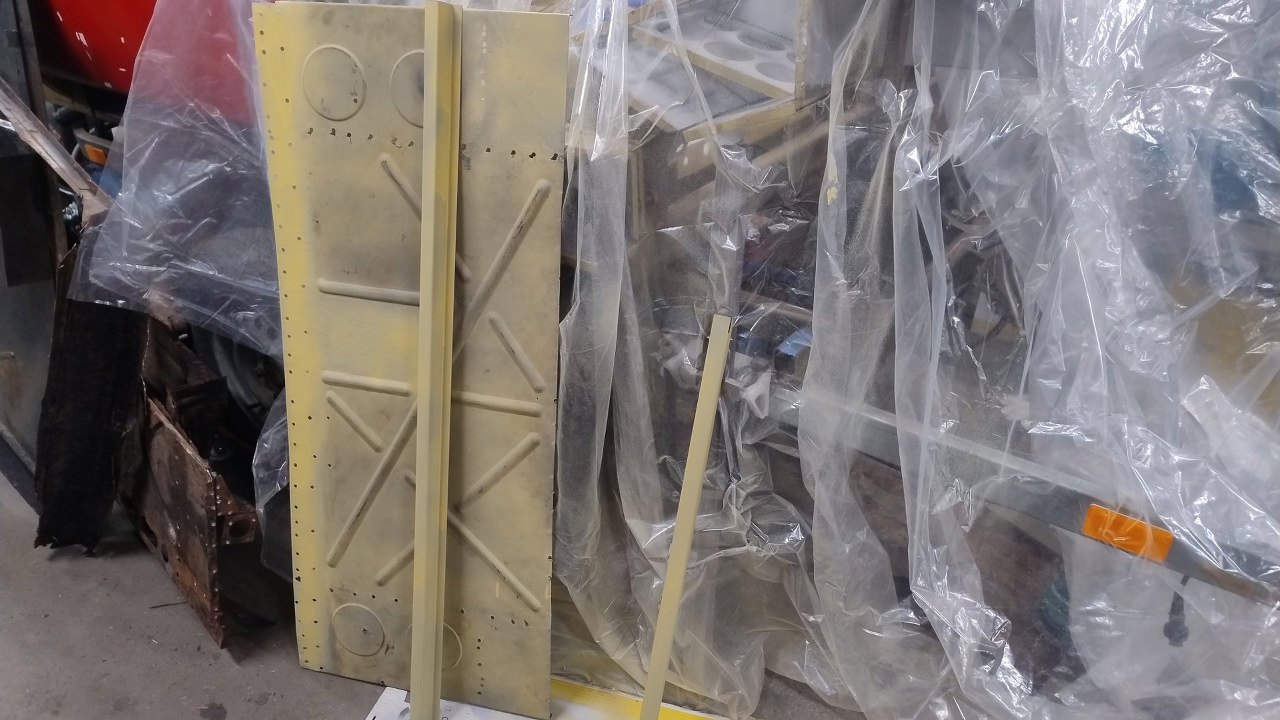 Przed połączeniem wzmocnienia z plecami kabiny obie części pomalowane zostały podkładem epoksydowym, pomijając oczywiście krawędzie, gdzie będą spawy.