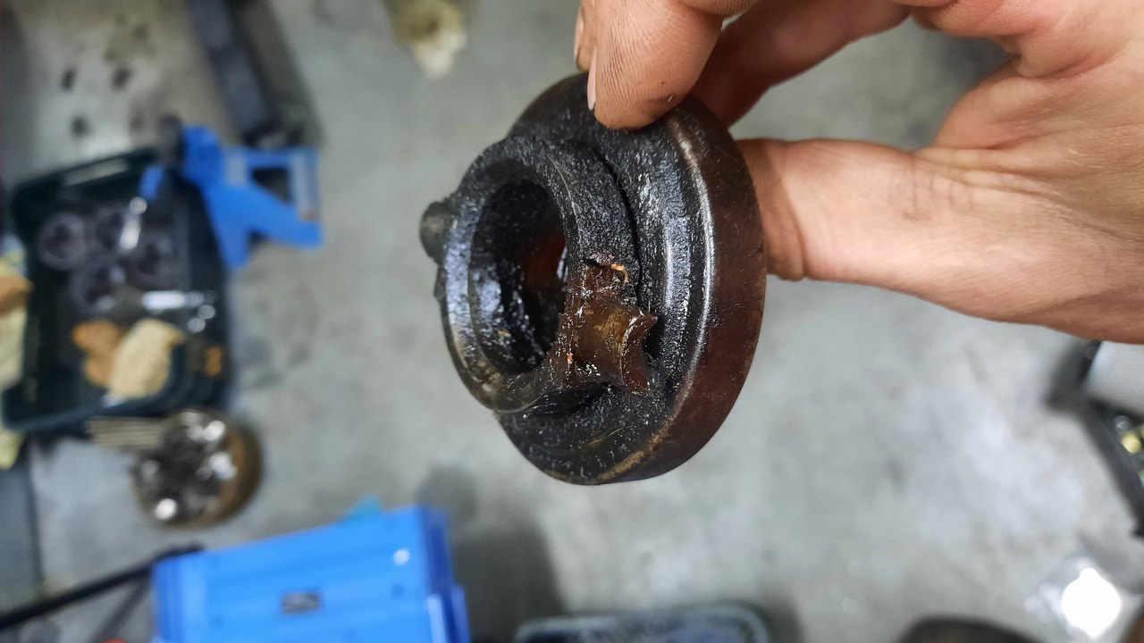 Dzwon zdjęty. Przed oddaniem go do piaskowania nieco go doczyszczę, żeby mnie w zakładzie nie znielubili :). Potem jeszcze wylałem resztę oleju ze skrzyni.