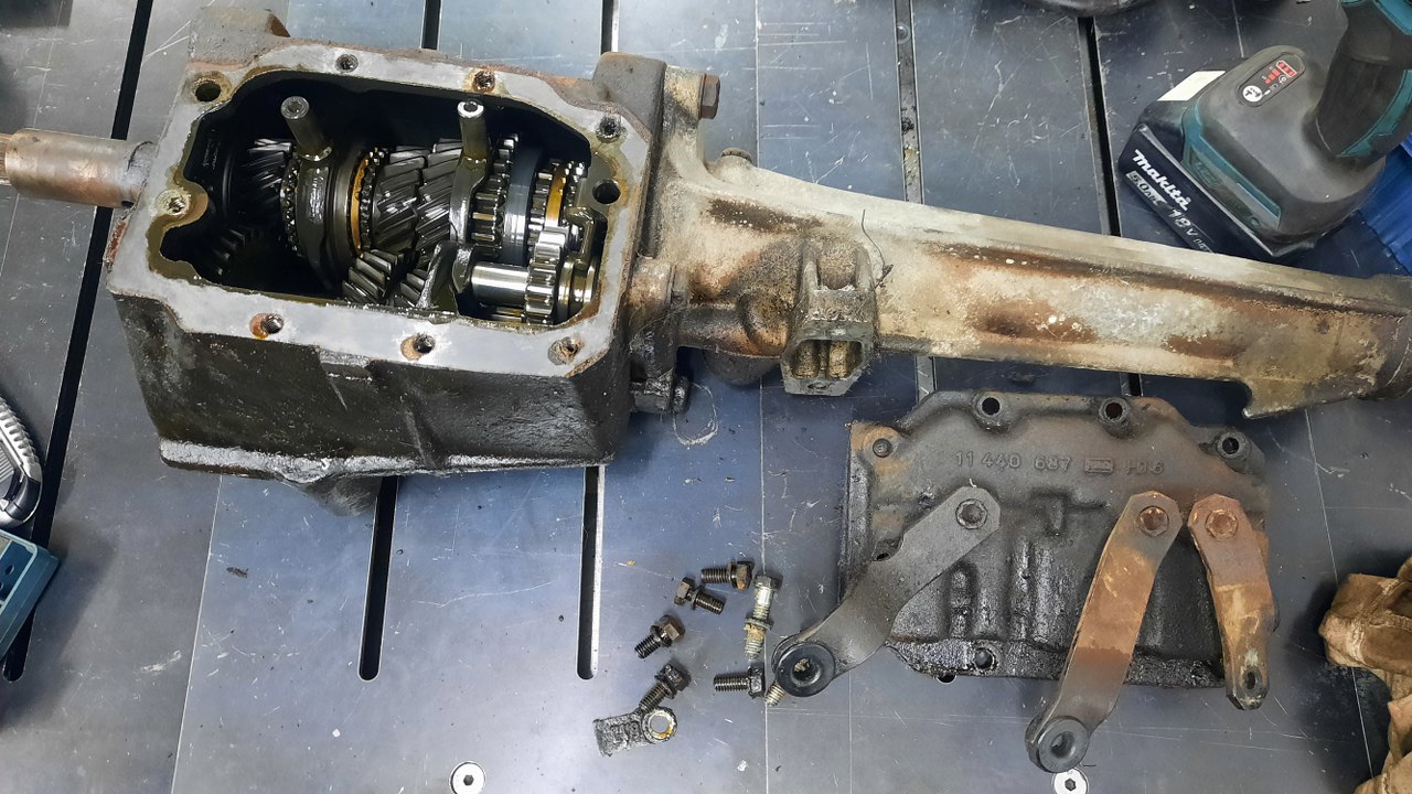 Przyjechał do mnie... nie, nie przyjechał Taunus :). Taunus aktualnie się remontuje, całkiem ładnie zresztą. Do mnie trafił właściciel ze skrzynią biegów luzem. Jest to skrzynia typ F, na zewnątrznych wodzikach.