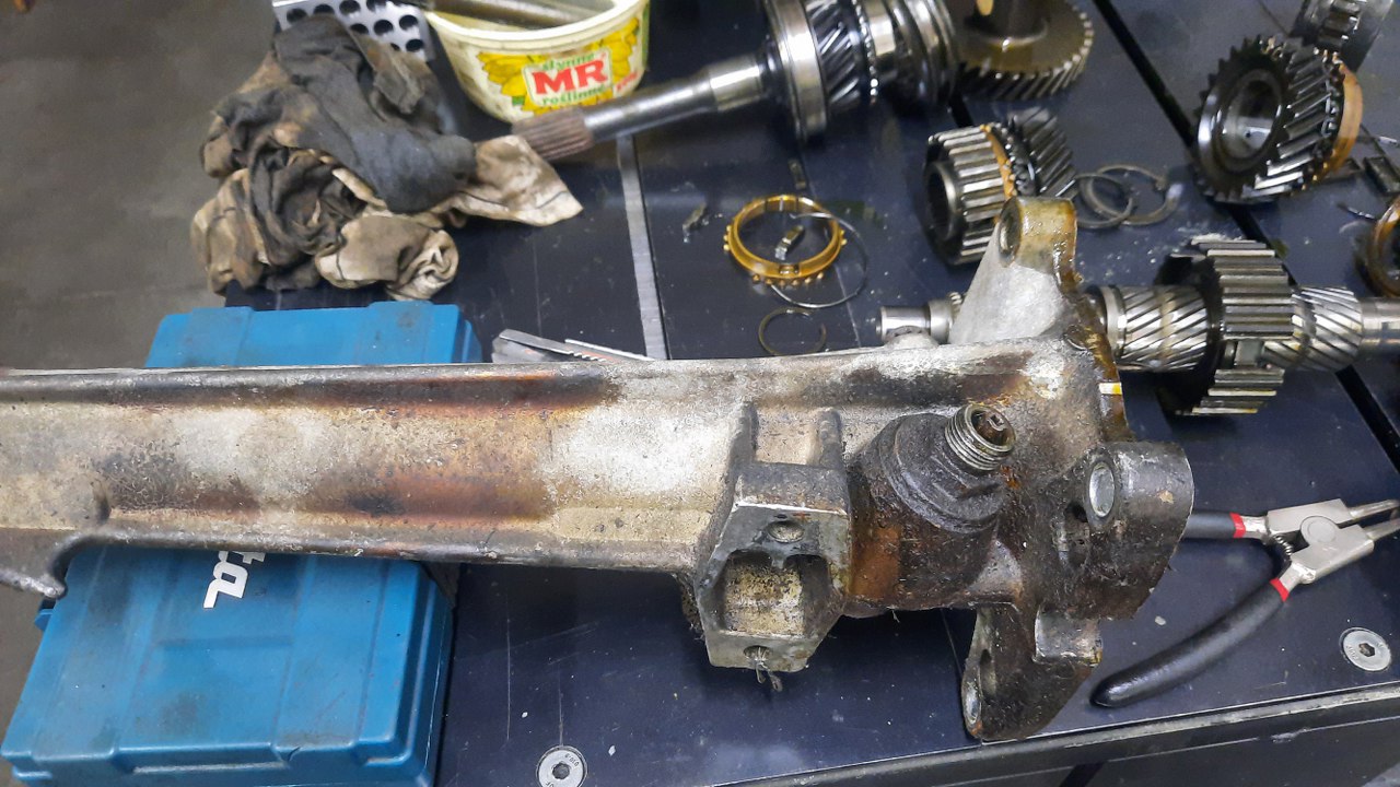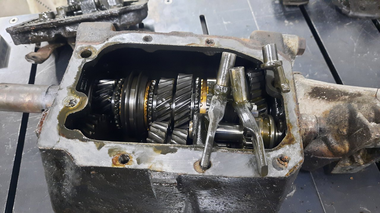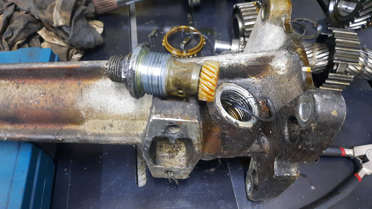 Na pierwszy rzut oka przekładnia wygląda na w dobrym stanie. Wyjmę teraz widełki wybieraków.
