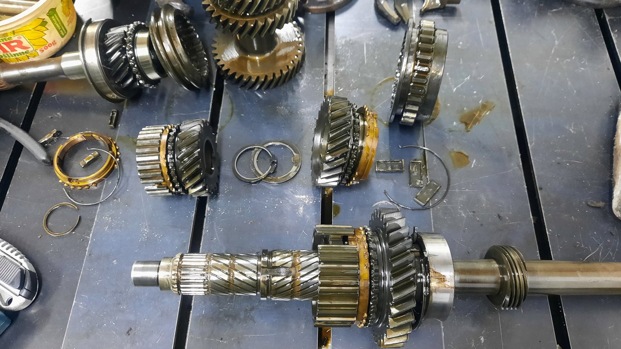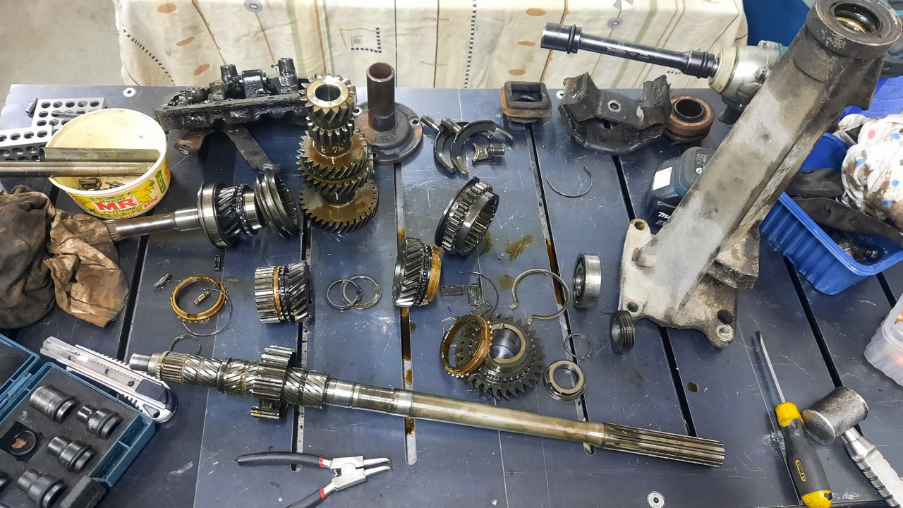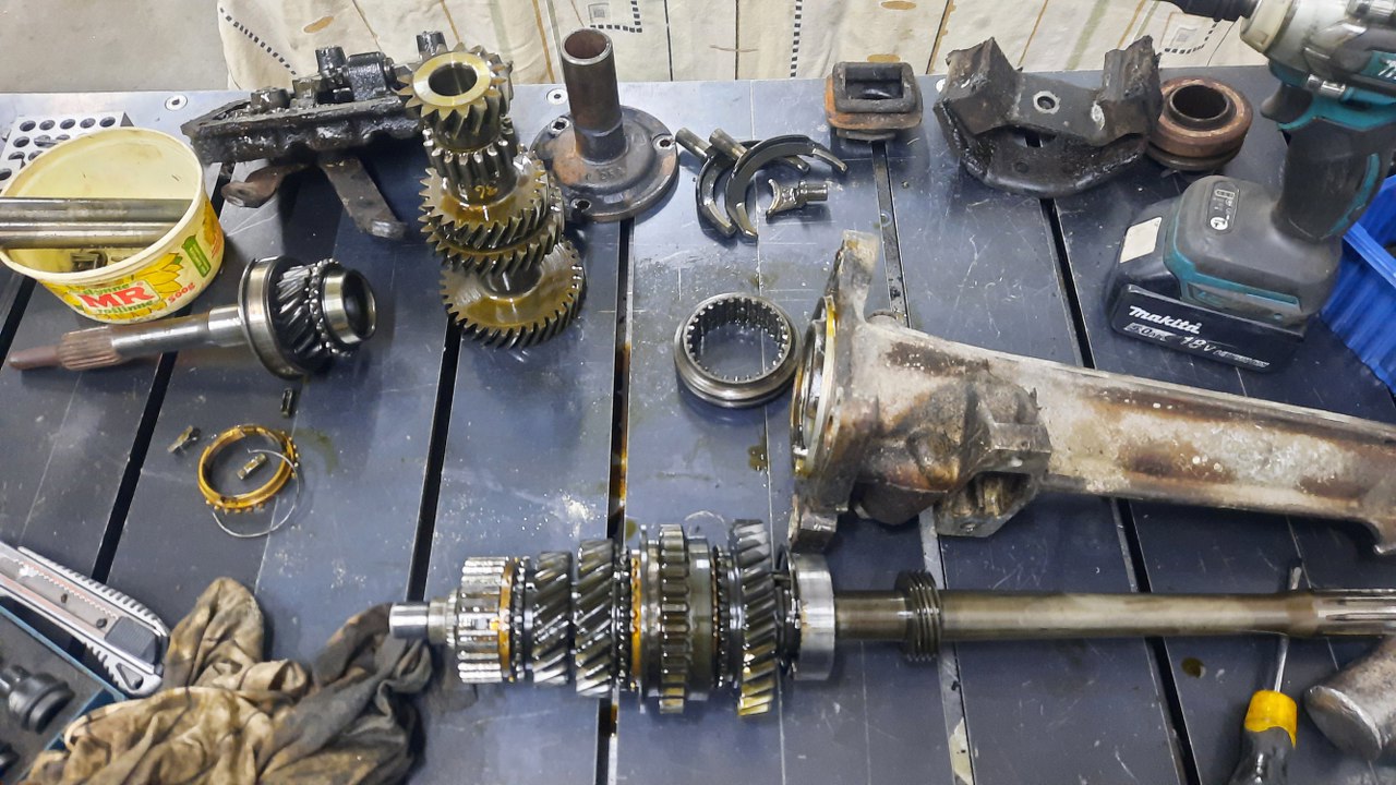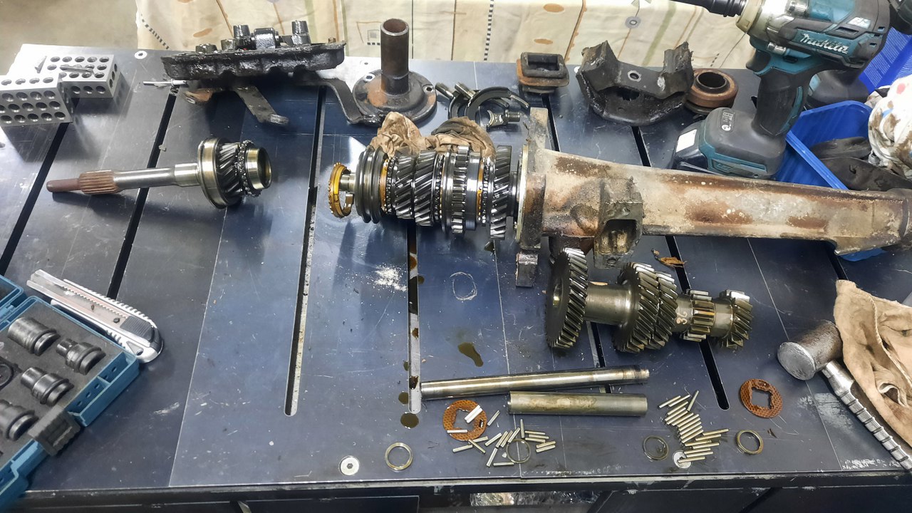 Na pierwszy rzut oka przekładnia wygląda na w dobrym stanie. Wyjmę teraz widełki wybieraków.
