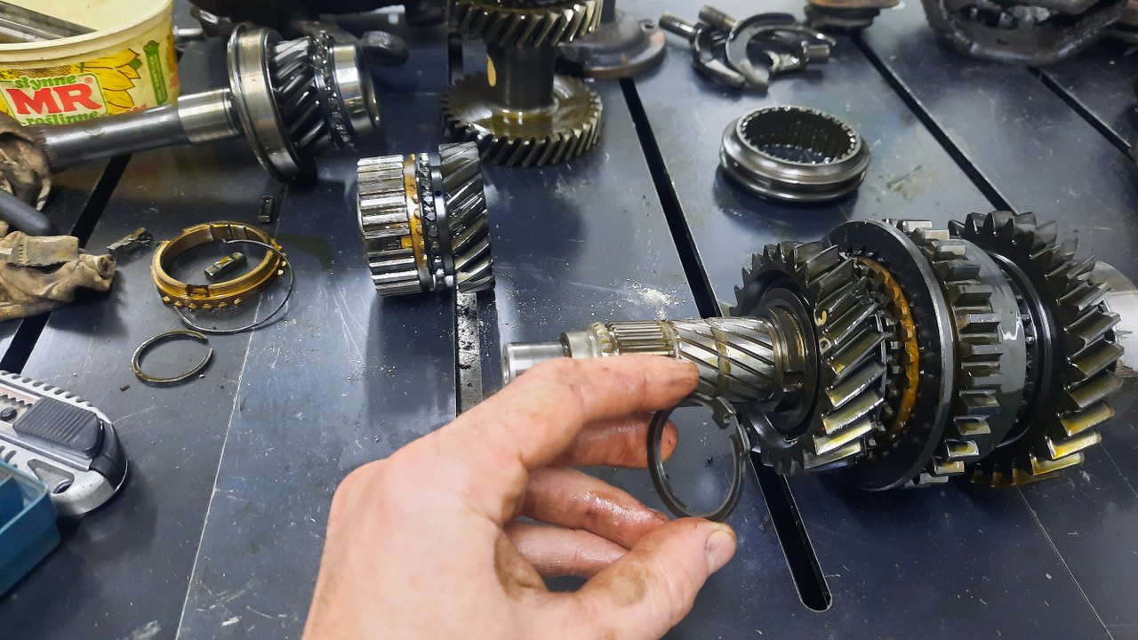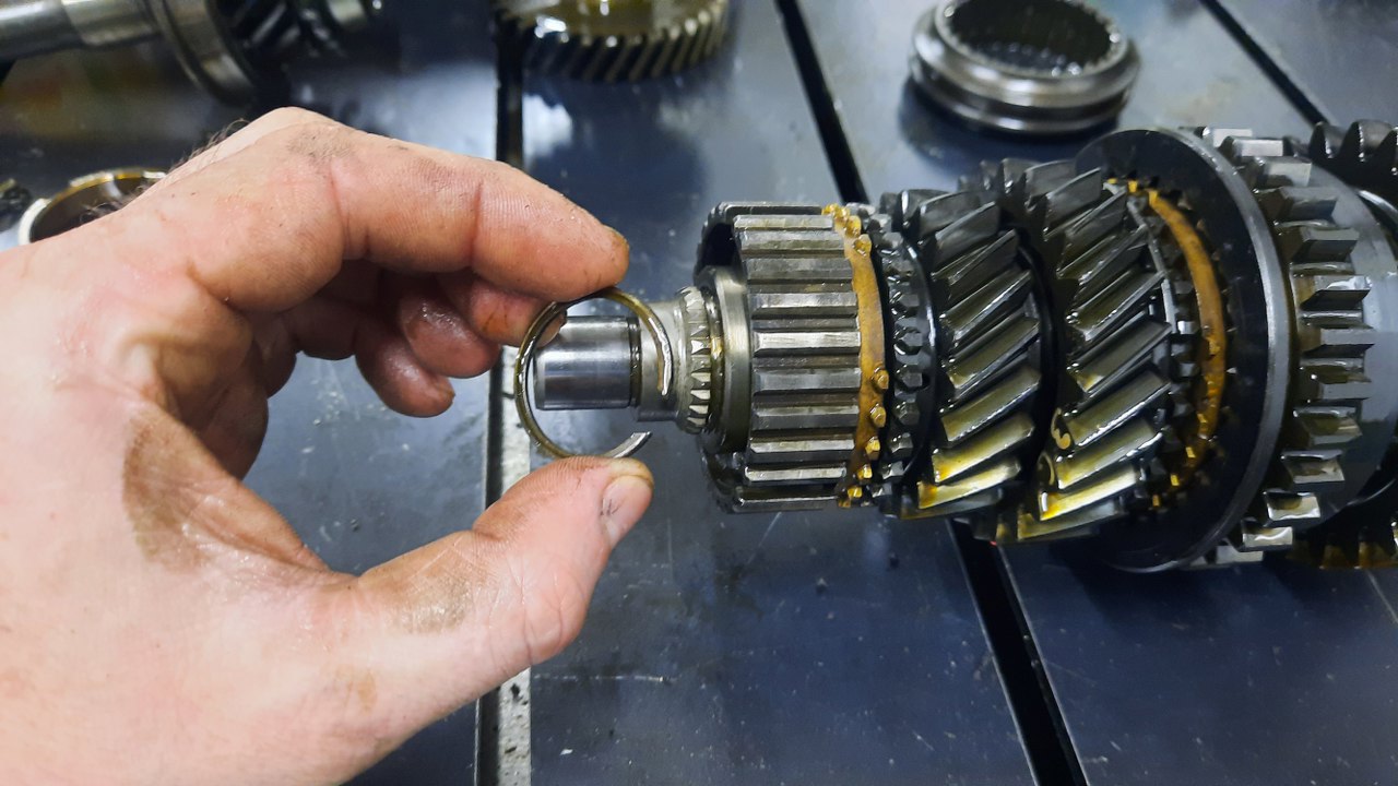 Pod kołem trzeciego biegu jest kolejny pierścień sprężysty. On trzyma koło zębate drugiego biegu.