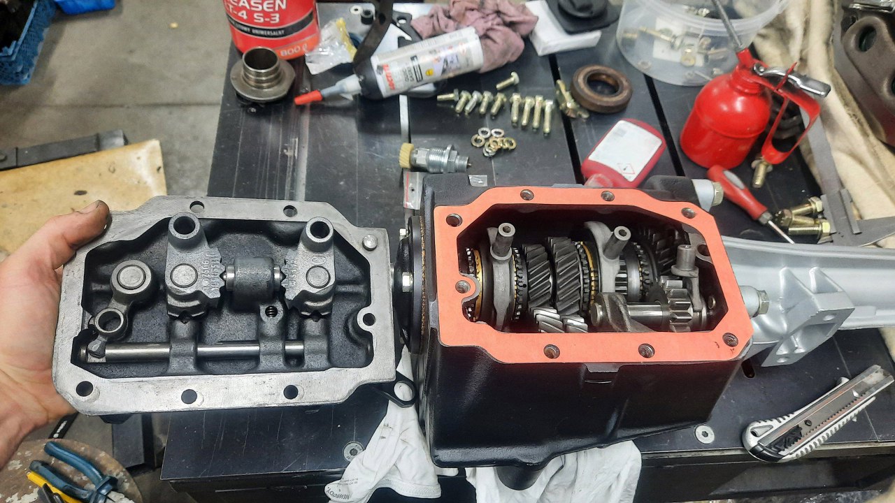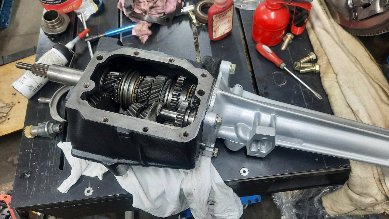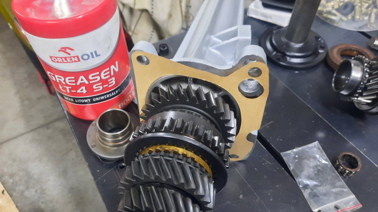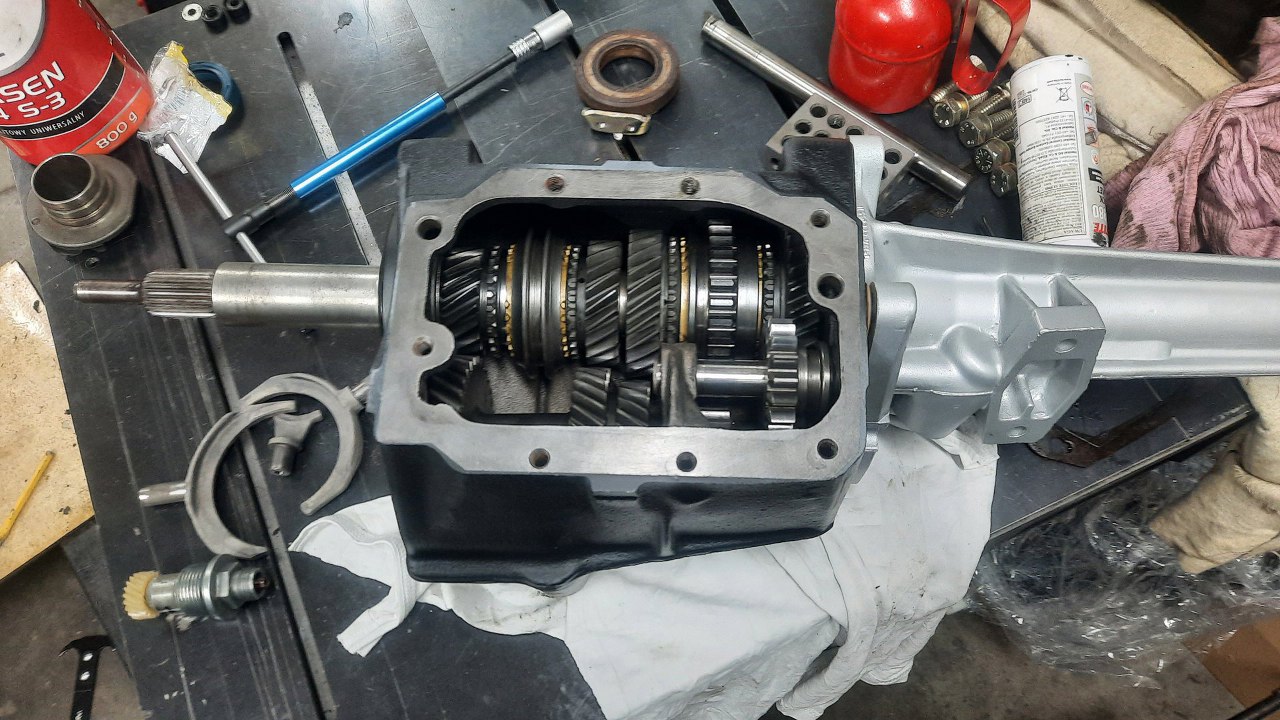 I cała skrzynia gotowa. Biegi wchodzą bardzo ładnie, mimo, że nie ma w niej jeszcze oleju. Powinna dobrze działać!