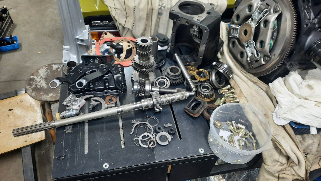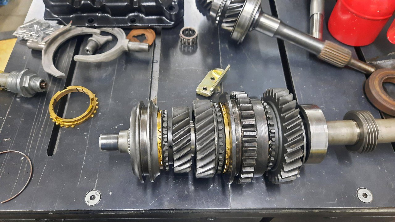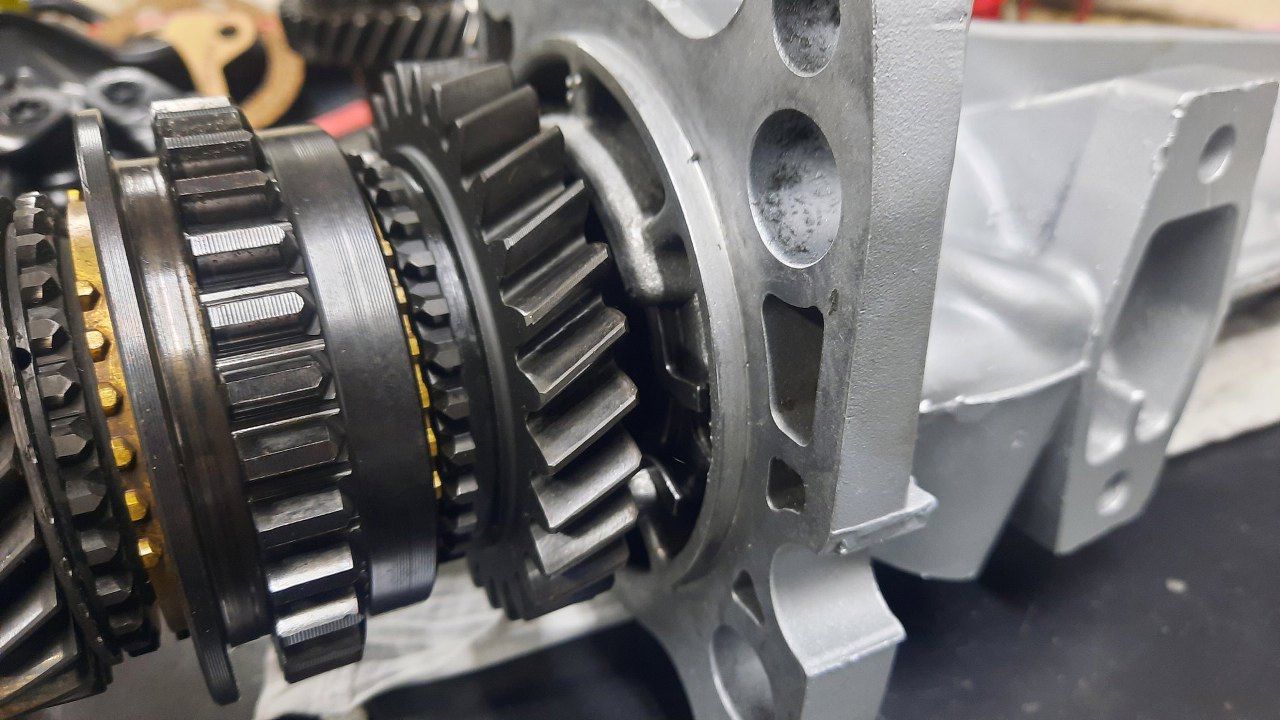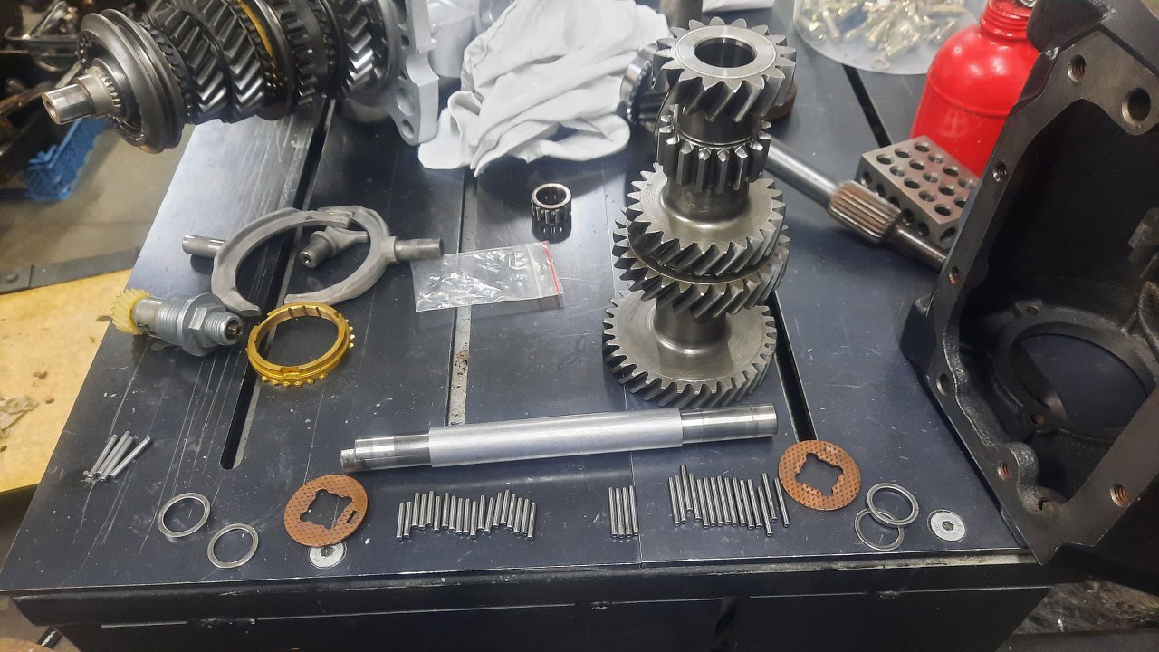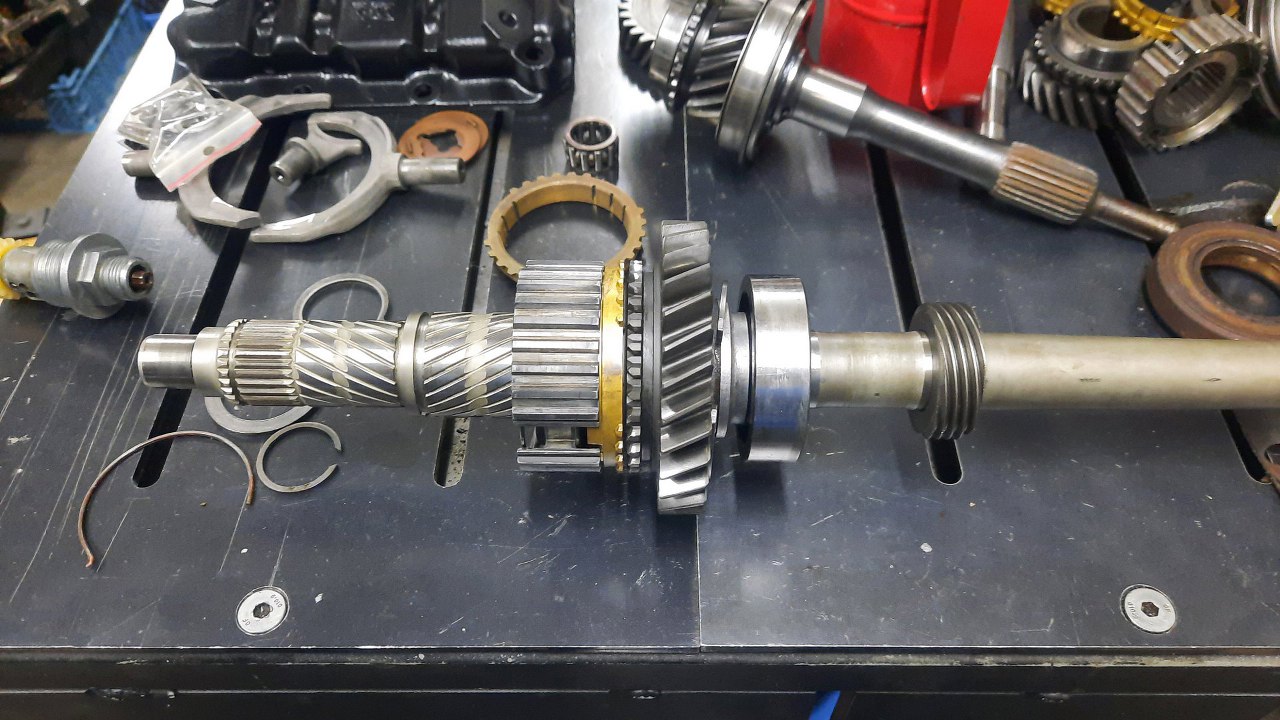 I cała skrzynia gotowa. Biegi wchodzą bardzo ładnie, mimo, że nie ma w niej jeszcze oleju. Powinna dobrze działać!