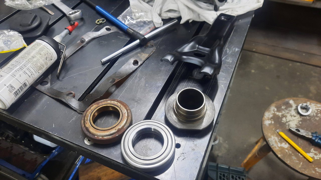 Łapę sprzęgła pomalowałem na czarno. Mam też nowe łożysko.