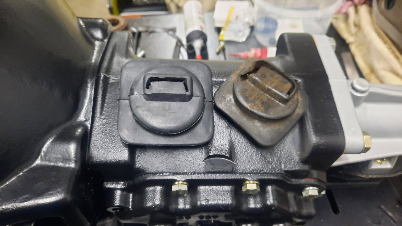 Teraz przykręcę napęd linki prędkościomierza i korki. Napęd prędkościomierza w późniejszych skrzyniach jest uszczelniony malutkim uszczelniaczem, tu nic takiego nie ma.