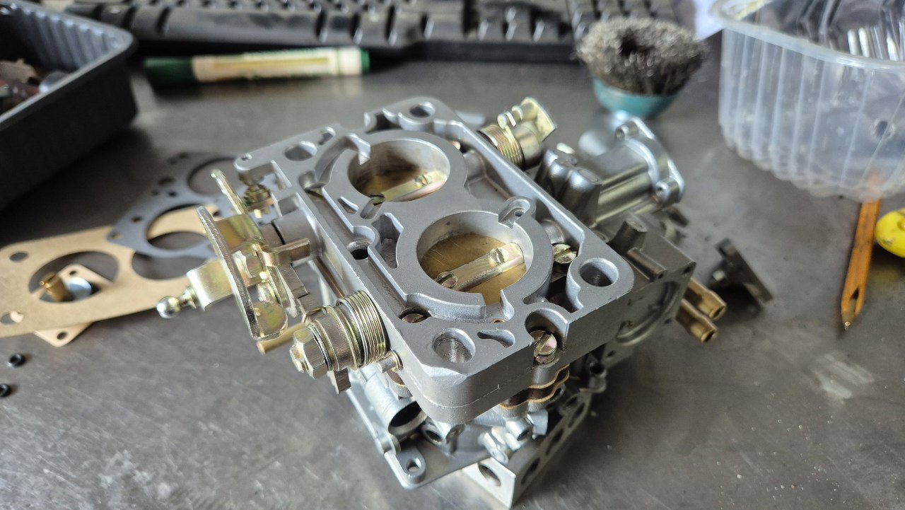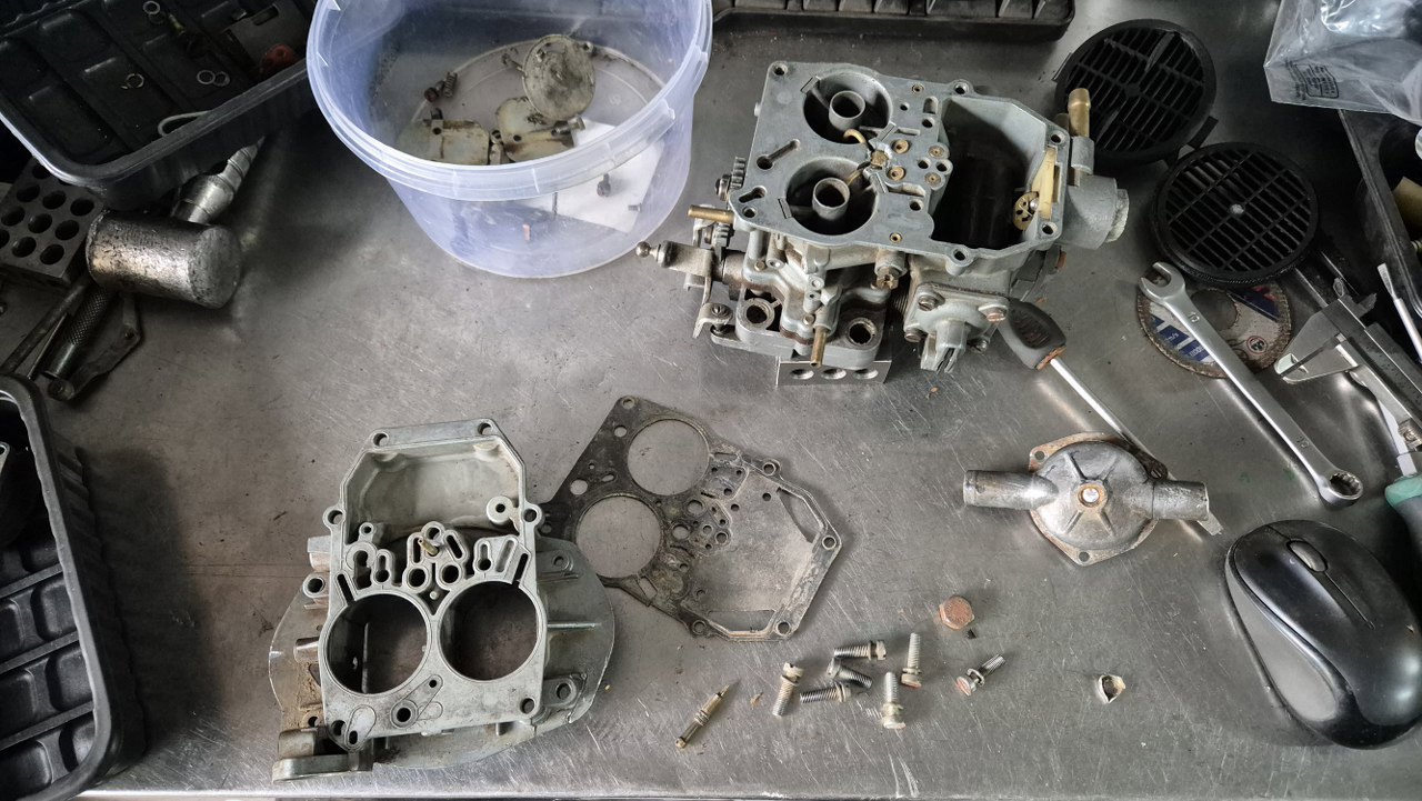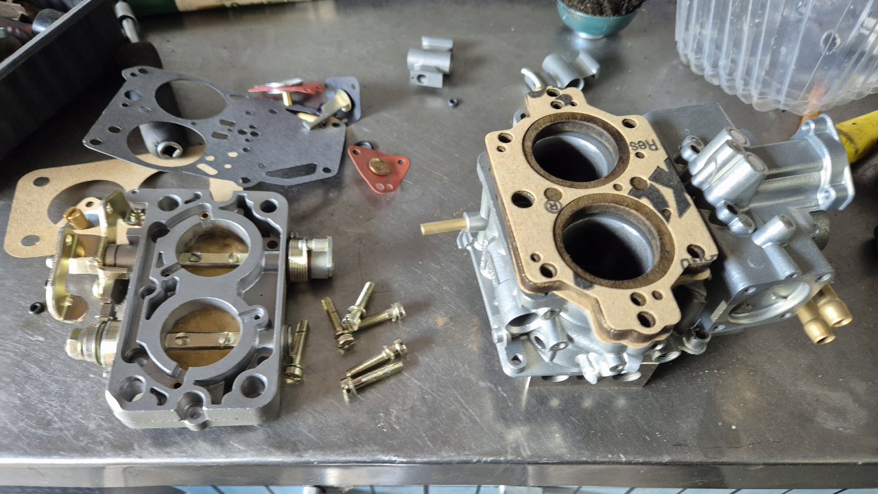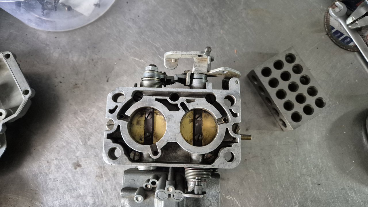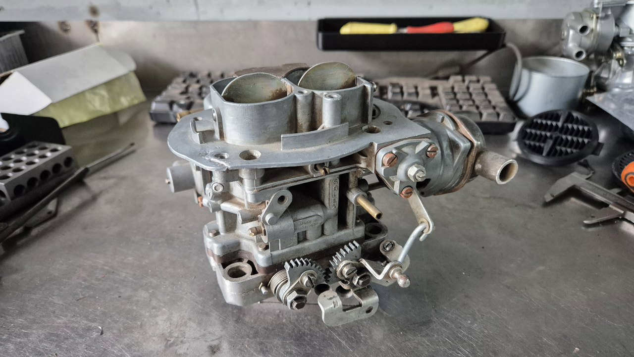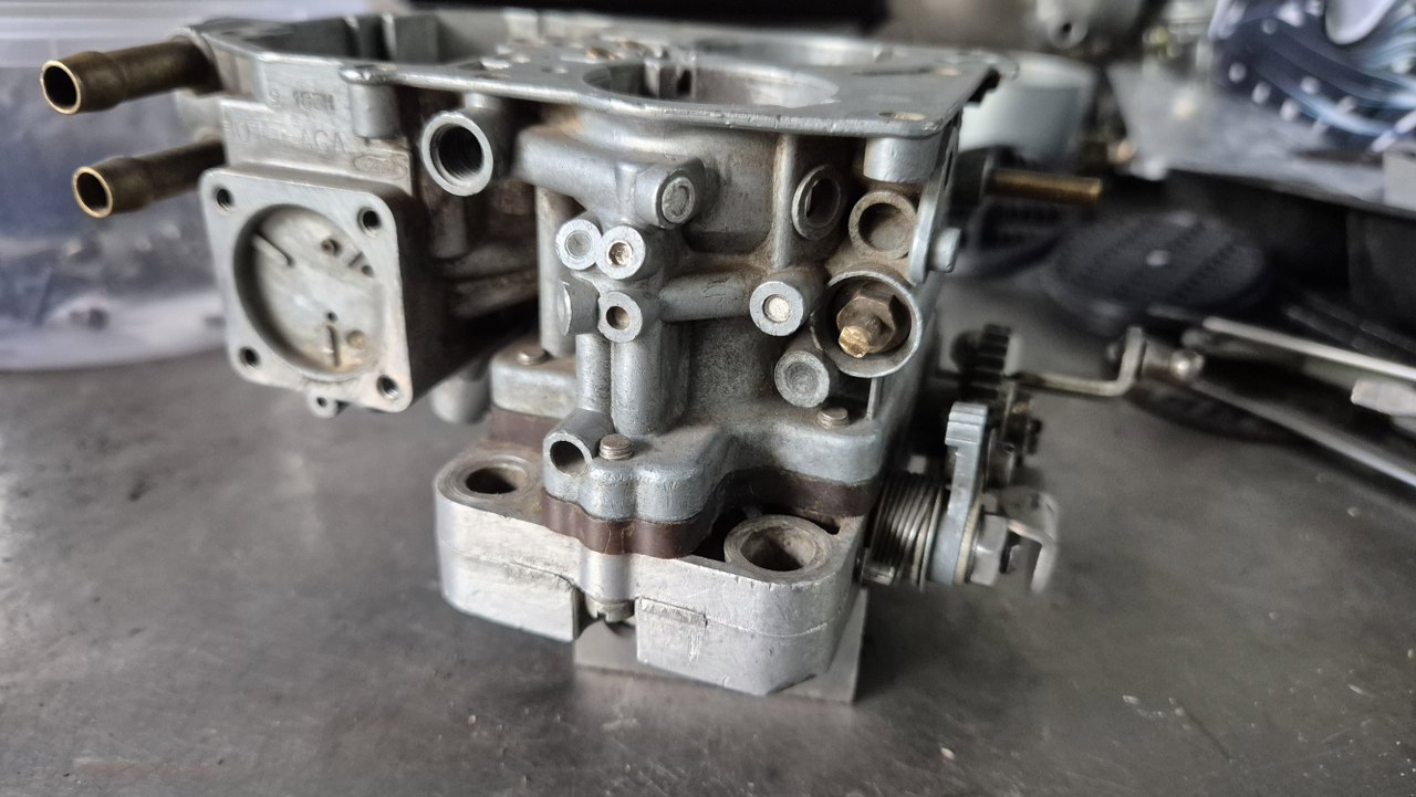 Kolejna rzecz, o której zrobienie poprosił mnie właściciel tego Taunusa 17M, to gaźnik. Rzecz totalnie nie od tego auta, bo oryginalnie był tam silnik V4, ale docelowo będzie 2.0 V6, i od takiego właśnie silnika jest ten gaźnik. Model - typowy Solex EEIT o przelotach 32/32 mm.