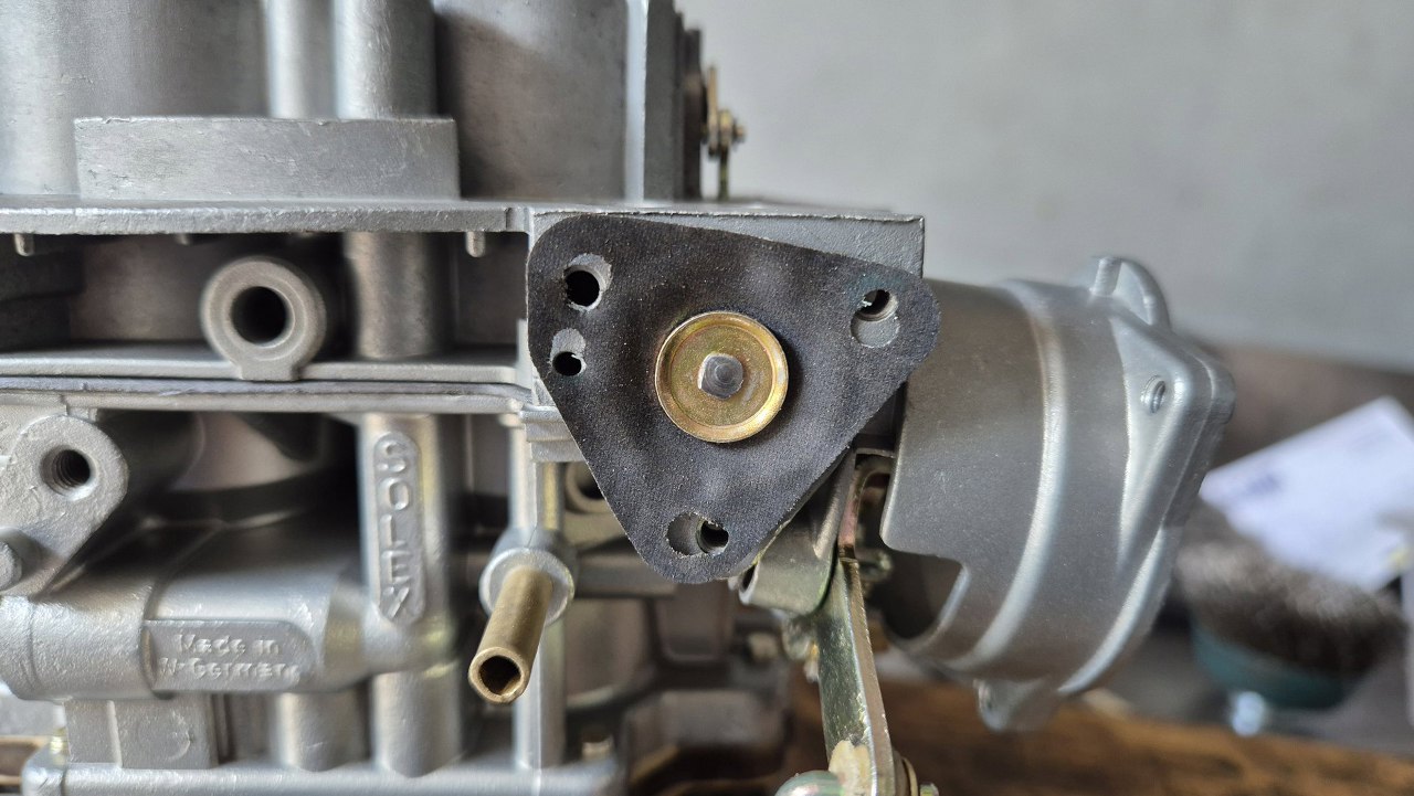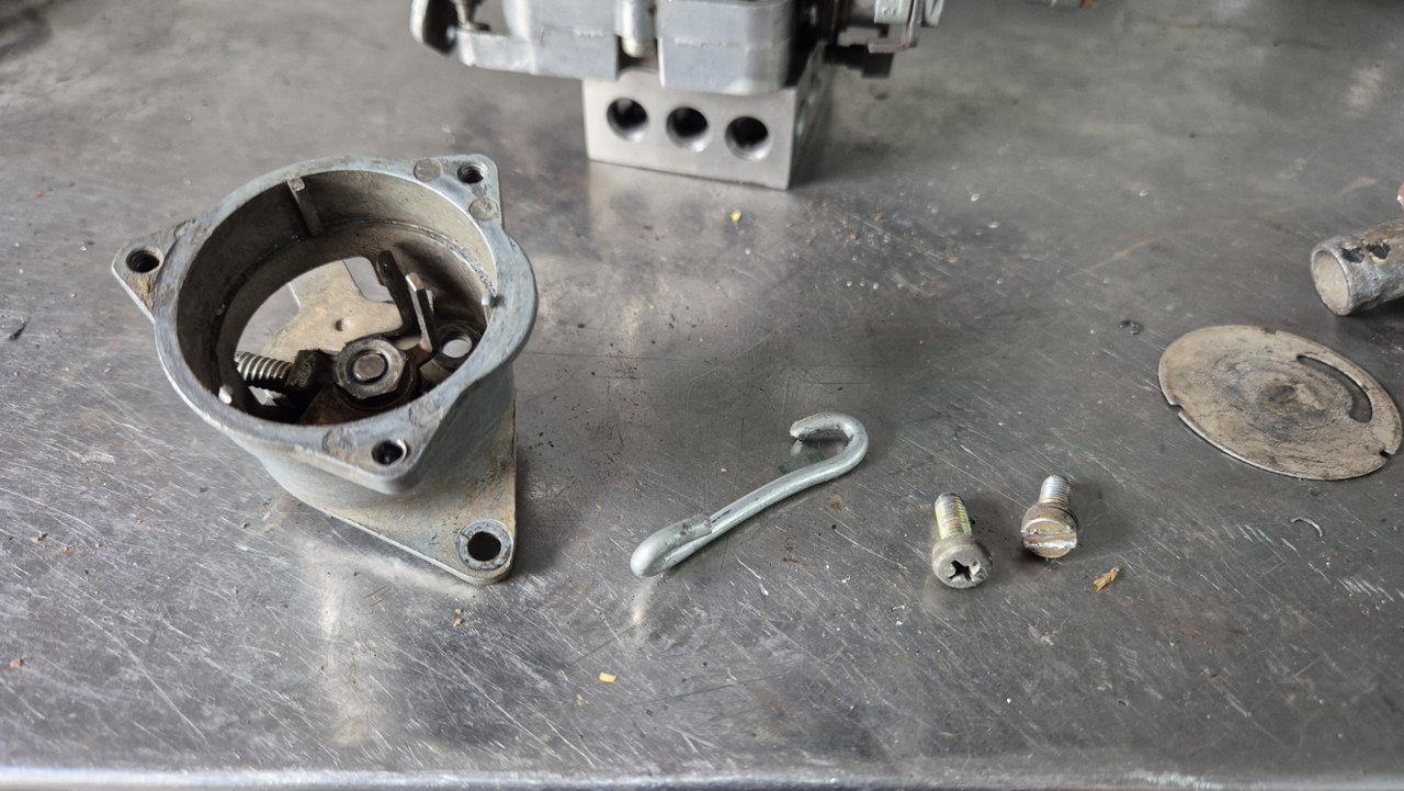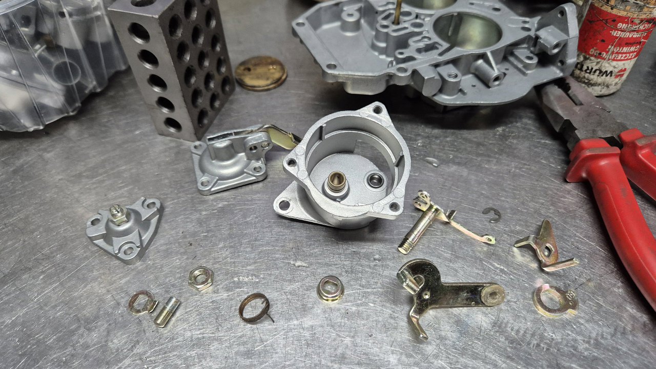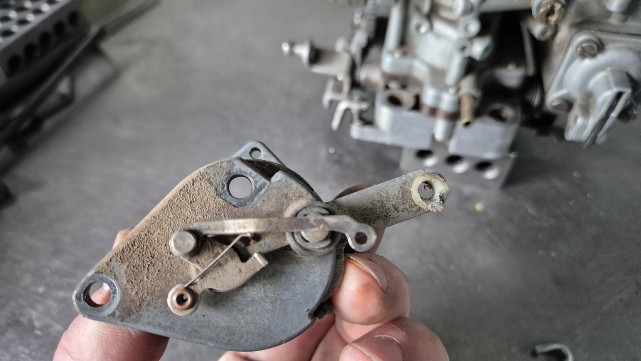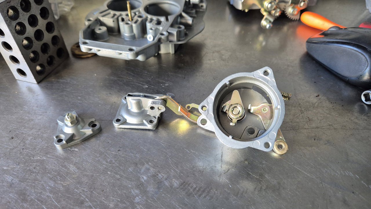 Zaraz po mechanizmie przepustnic, żmudnym do złożenia i wyregulowania, to jest druga rzecz trudna w tym gaźniku, czyli mechanizm ssania. Ciężko go źle poskładać, ale jest to drobne i wewnątrz obudowy.