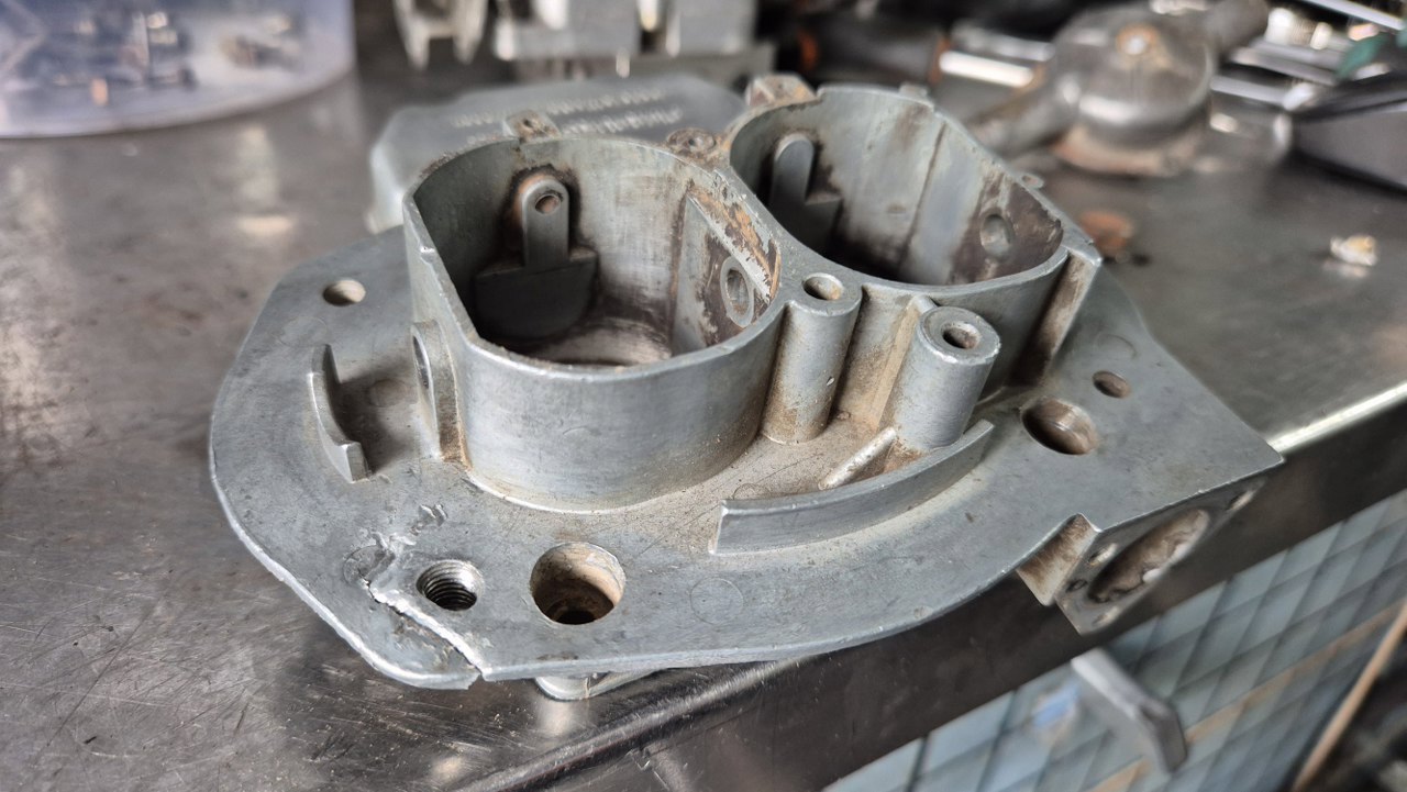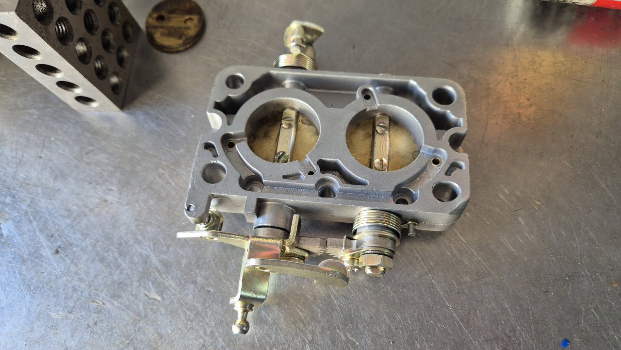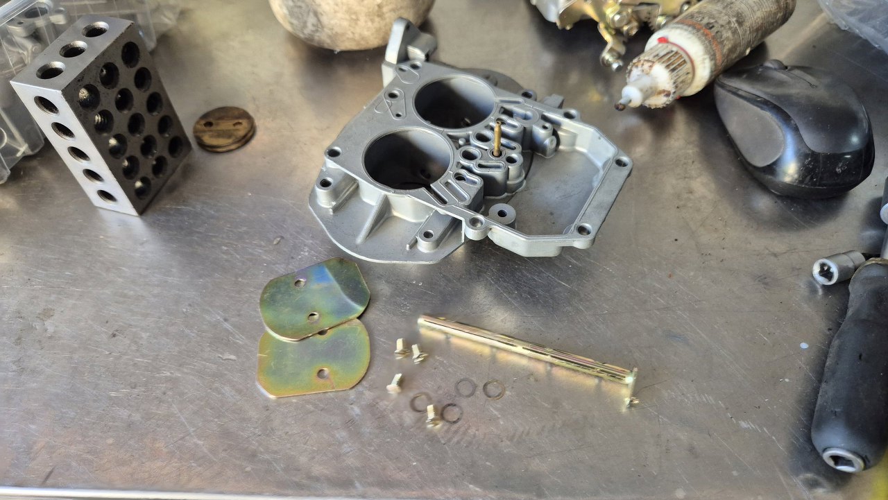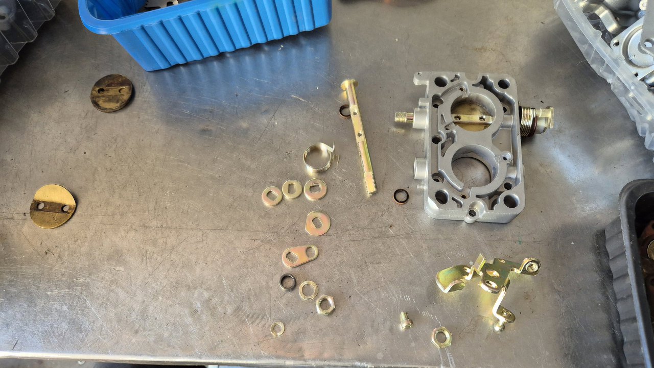 Dostałem już zestaw naprawczy, więc mogę skręcać dalej. Najpierw płytka przepustnic do korpusu gaźnika.