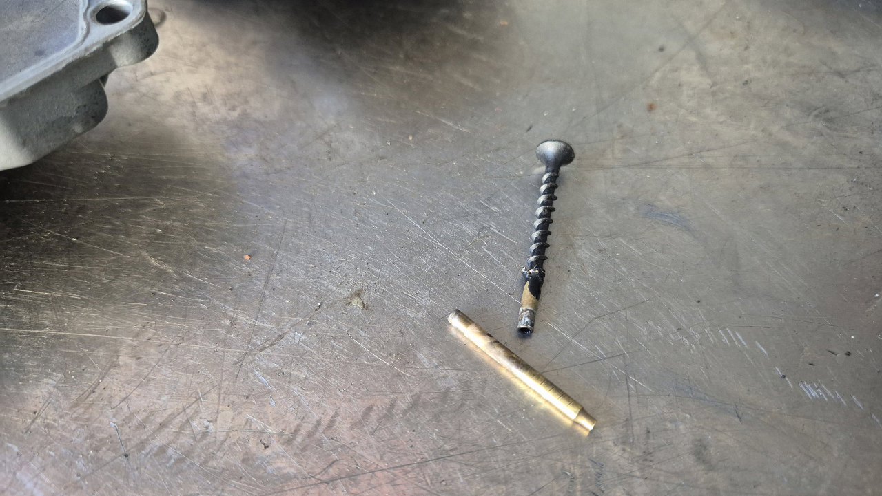 Nadal nie miałem natchnienia na to, ale już musiałem to składać, więc się zabrałem za niewykręcalną śrubę z grzałki ssania. Skończyło się na jej wywierceniu, wyjęciu resztek i przegwintowaniu otworu.