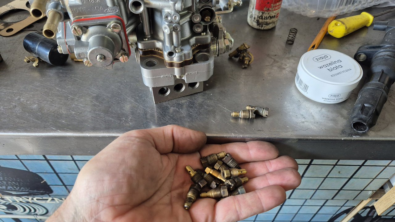 Zdemontowałem pływak z zaworkiem iglicowym, dysze i rozpylacze.