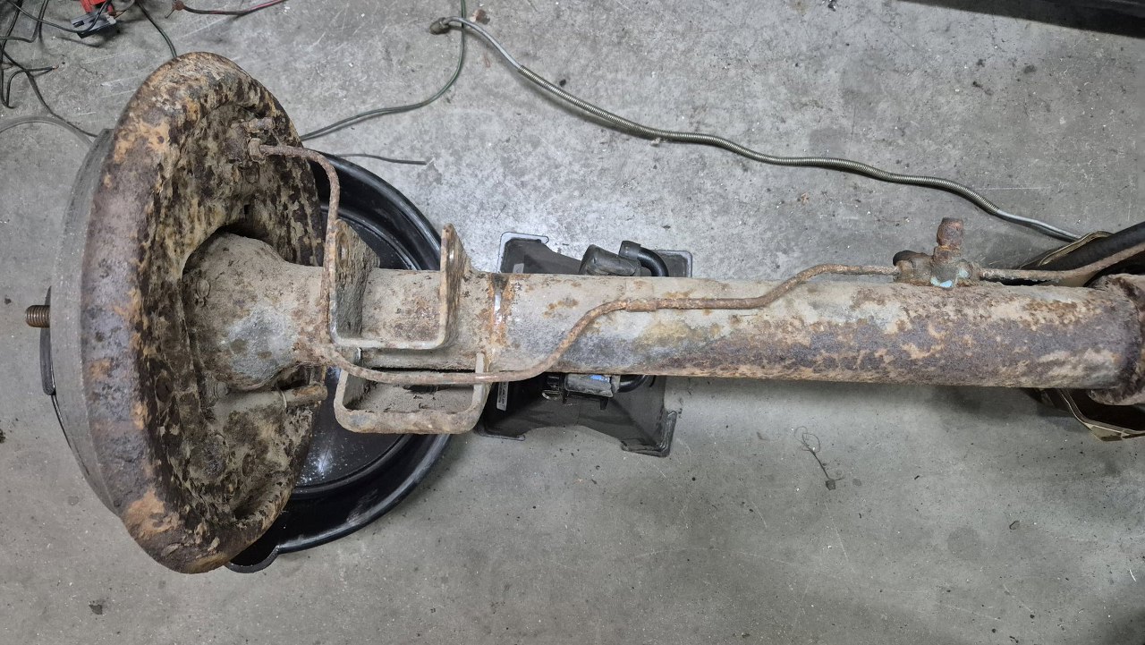 Jak widać, stan całości jest nieco podchrupany zębem czasu. Wyprzedzając fakty - docelowo jednak wziąłem z drugiego mostu tarcze kotwiczne, bo były w lepszym stanie niż te tutaj. Rurek hamulcowych nie ma co nawet próbować odkręcać, są tak kruche.